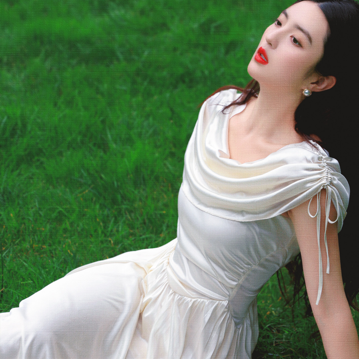 油画女孩白月光复古礼服裙法式宫廷设计感荡领连衣裙高级感小白裙