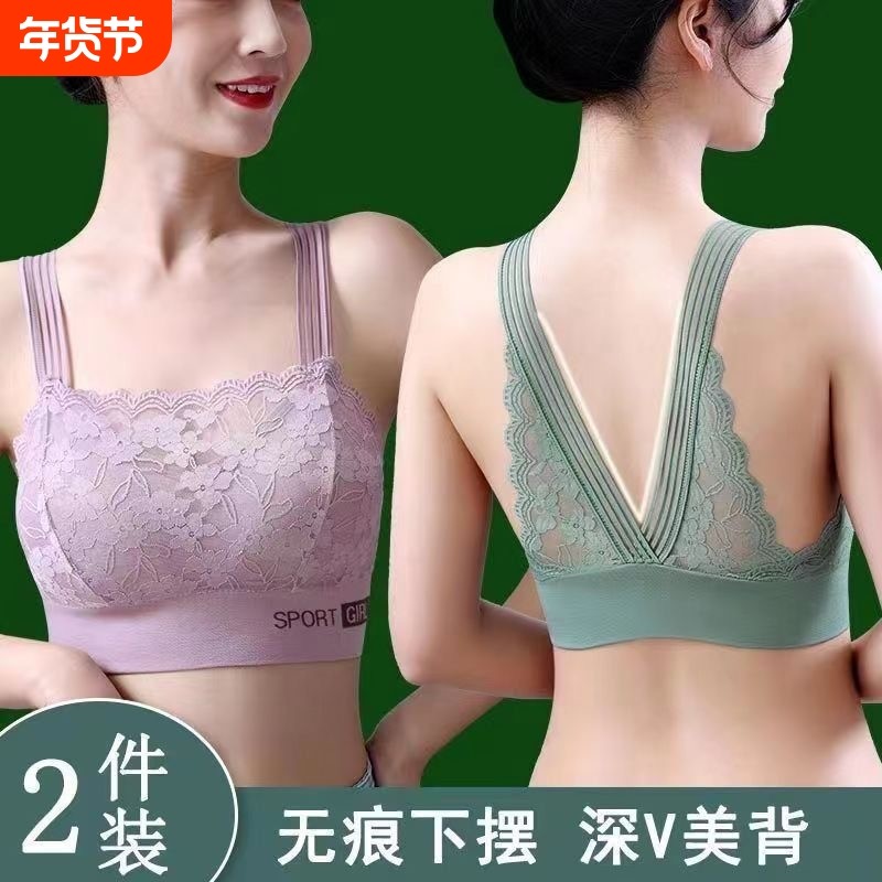 法式性感蕾丝女士内衣防走光收副乳文胸聚拢防震运动美背抹胸