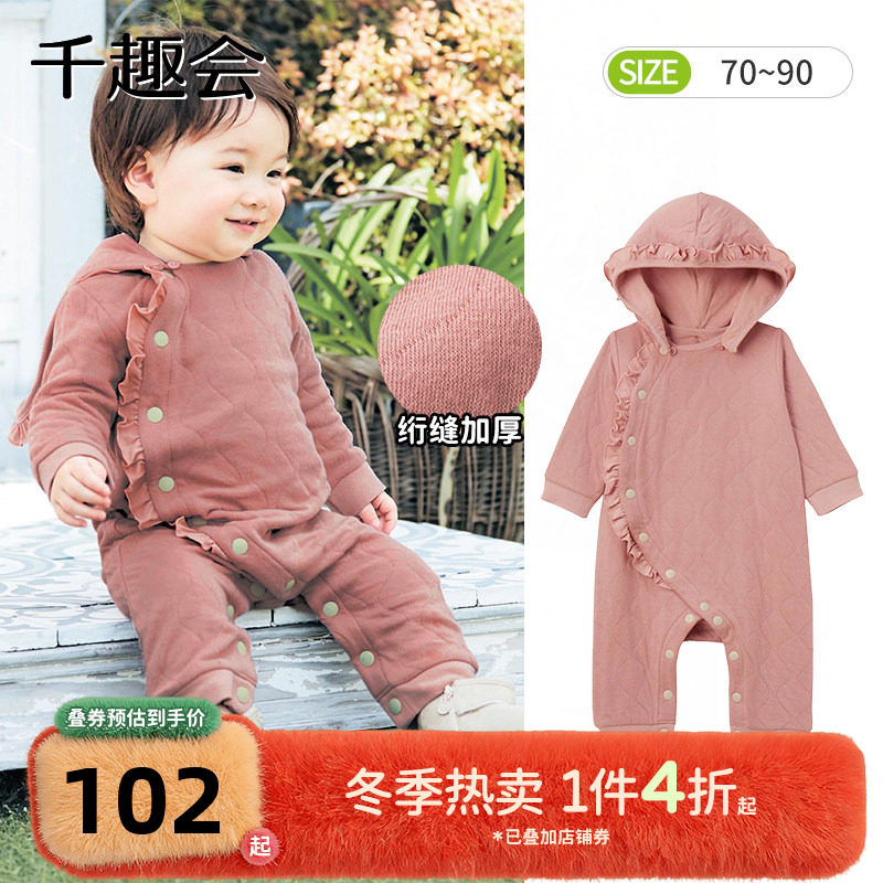 千趣会秋冬款婴童装针织绗缝保暖女童宝宝连体衣