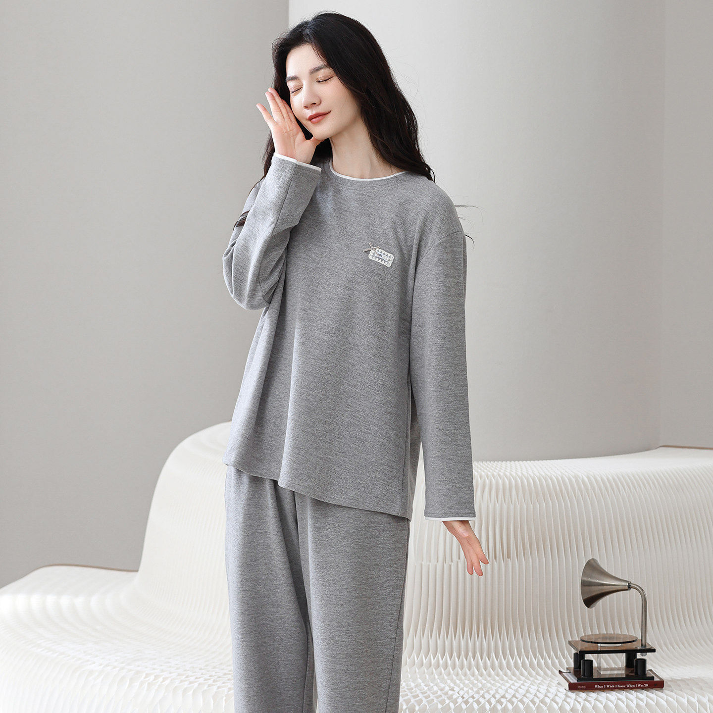 安比斯情侣睡衣舒适纯棉秋季女长袖男女同款休闲家居服套装可出门