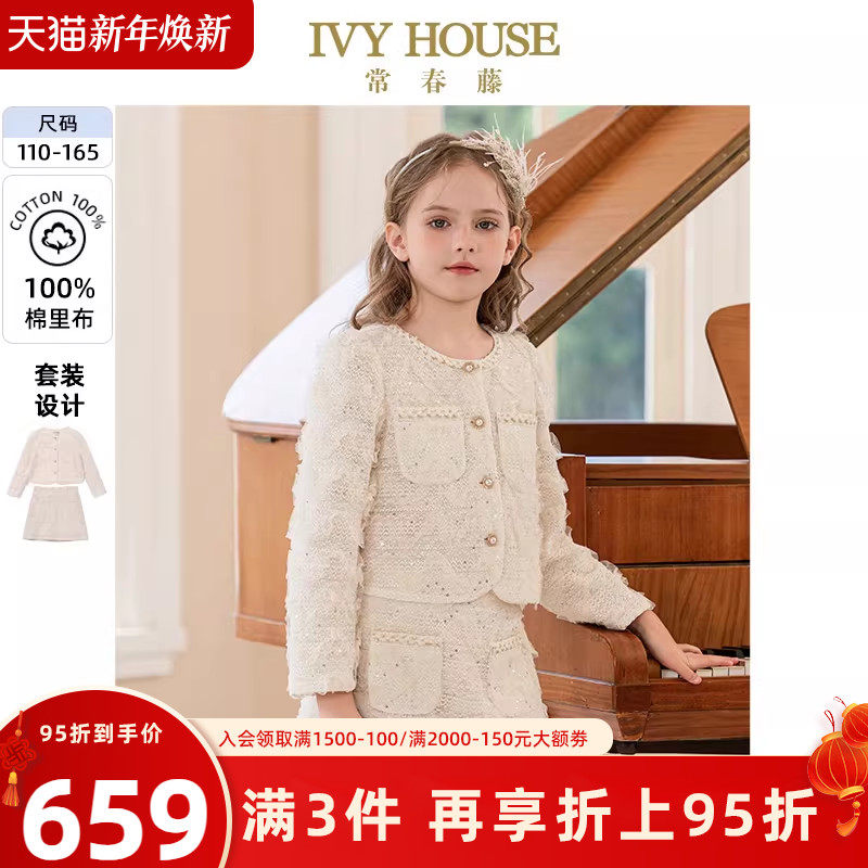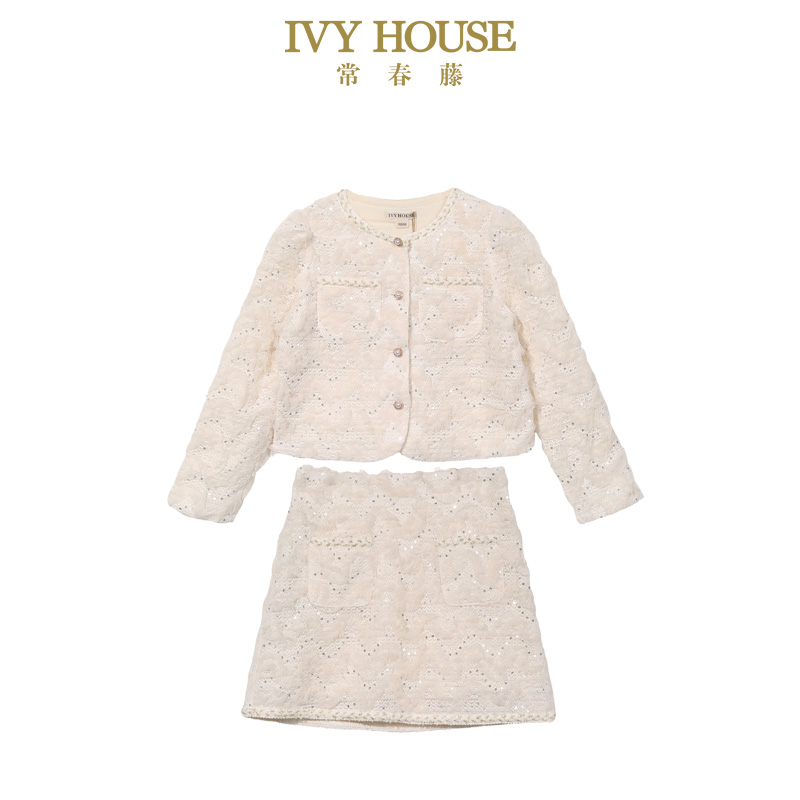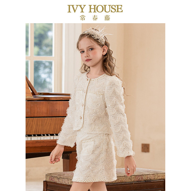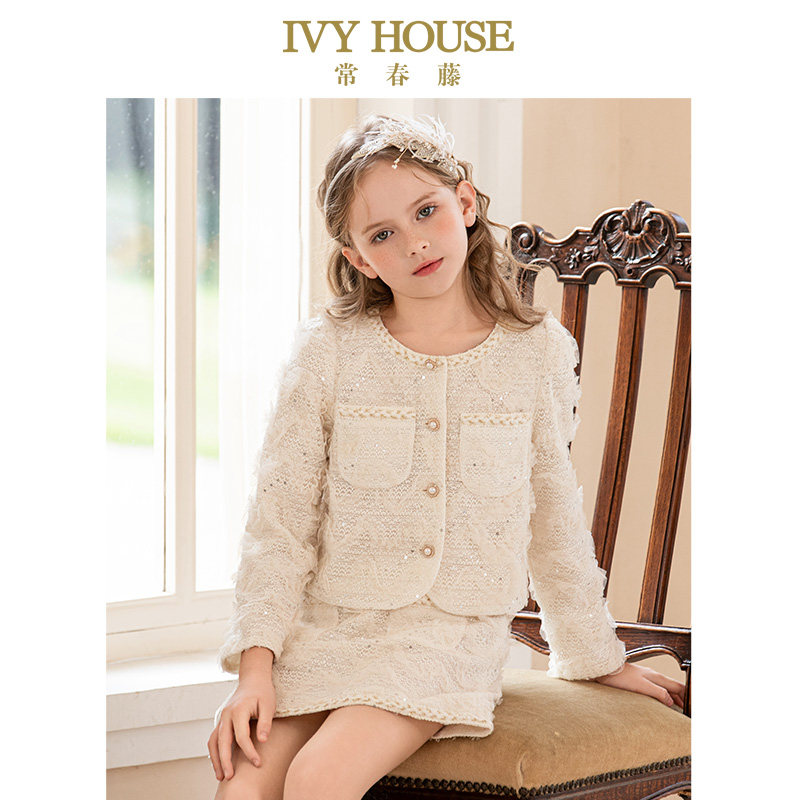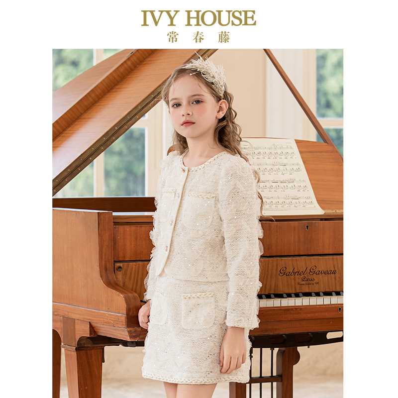 IVY HOUSE常春藤儿童装女童春新款 亮片蕾丝小香风外套套装亲子装
