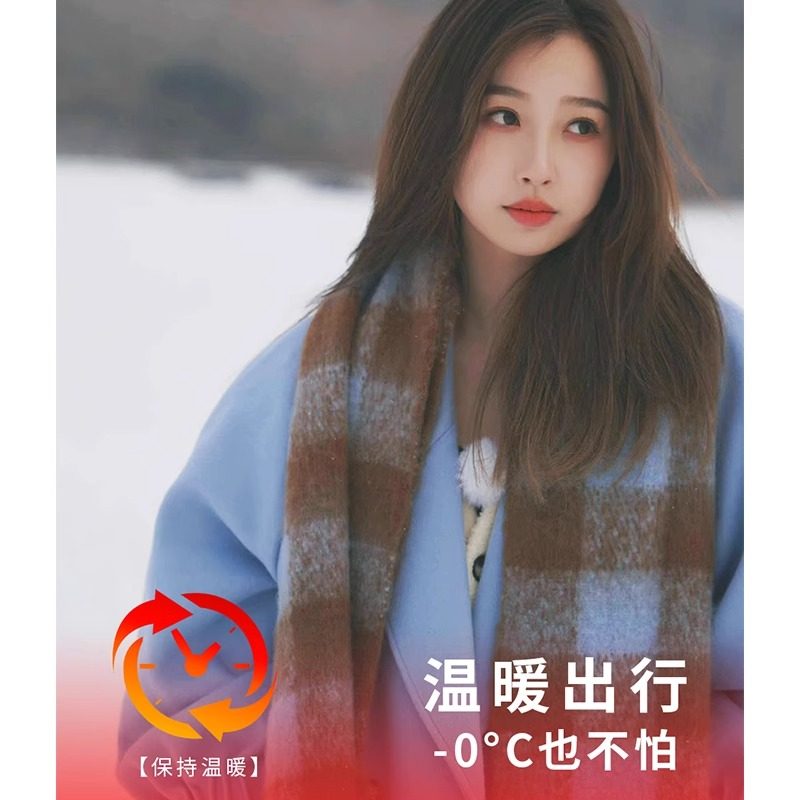 虞书欣同款马海毛格子围巾女冬季加厚保暖围脖披肩潮黑白咖色新年