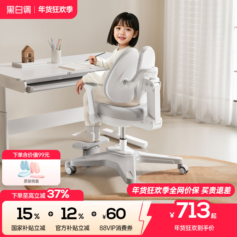 黑白调G5儿童学习椅小学生家用写字椅矫正坐姿调节座椅书桌椅子