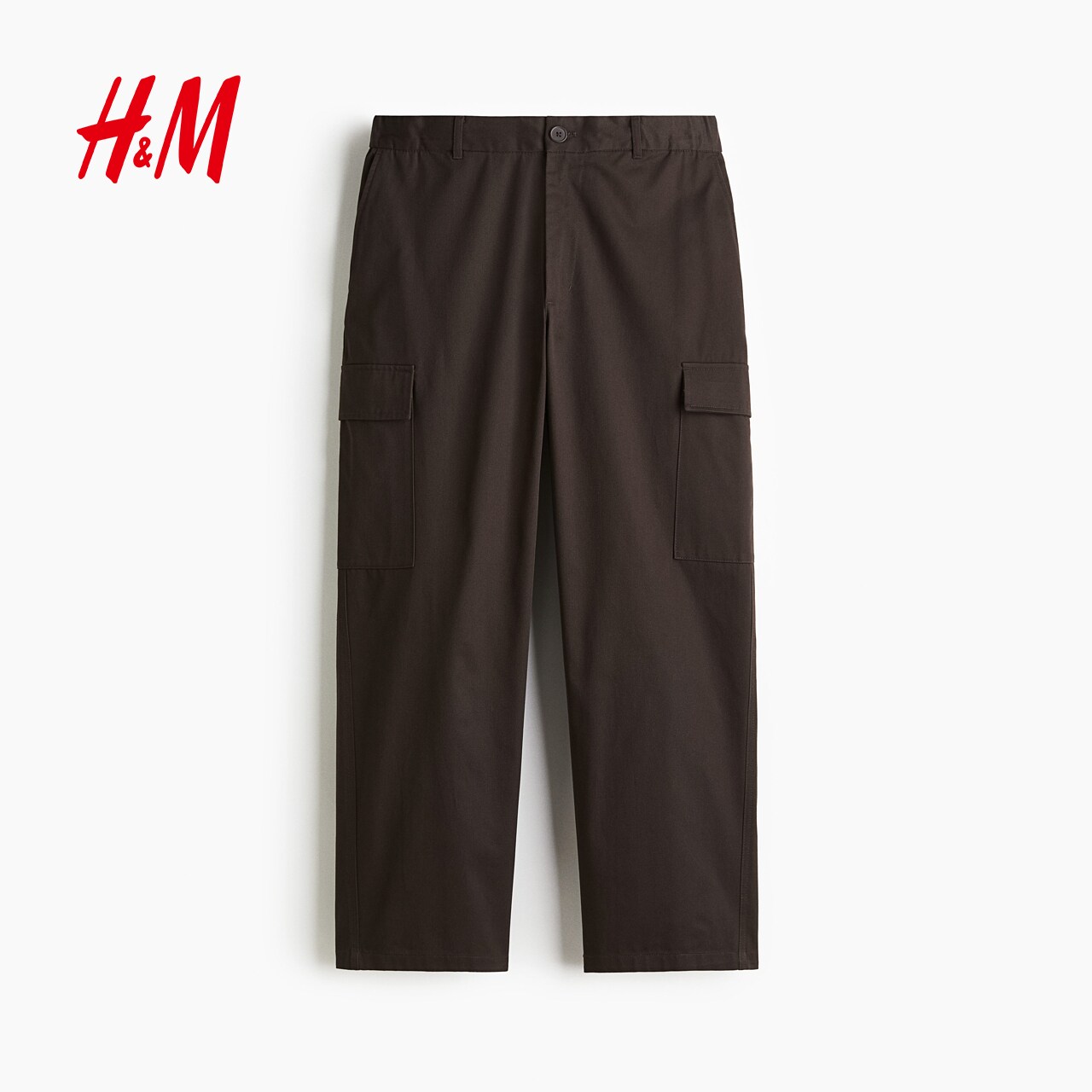 HM男装休闲裤春季宽松通勤休闲直筒美式长裤工装裤1294219
