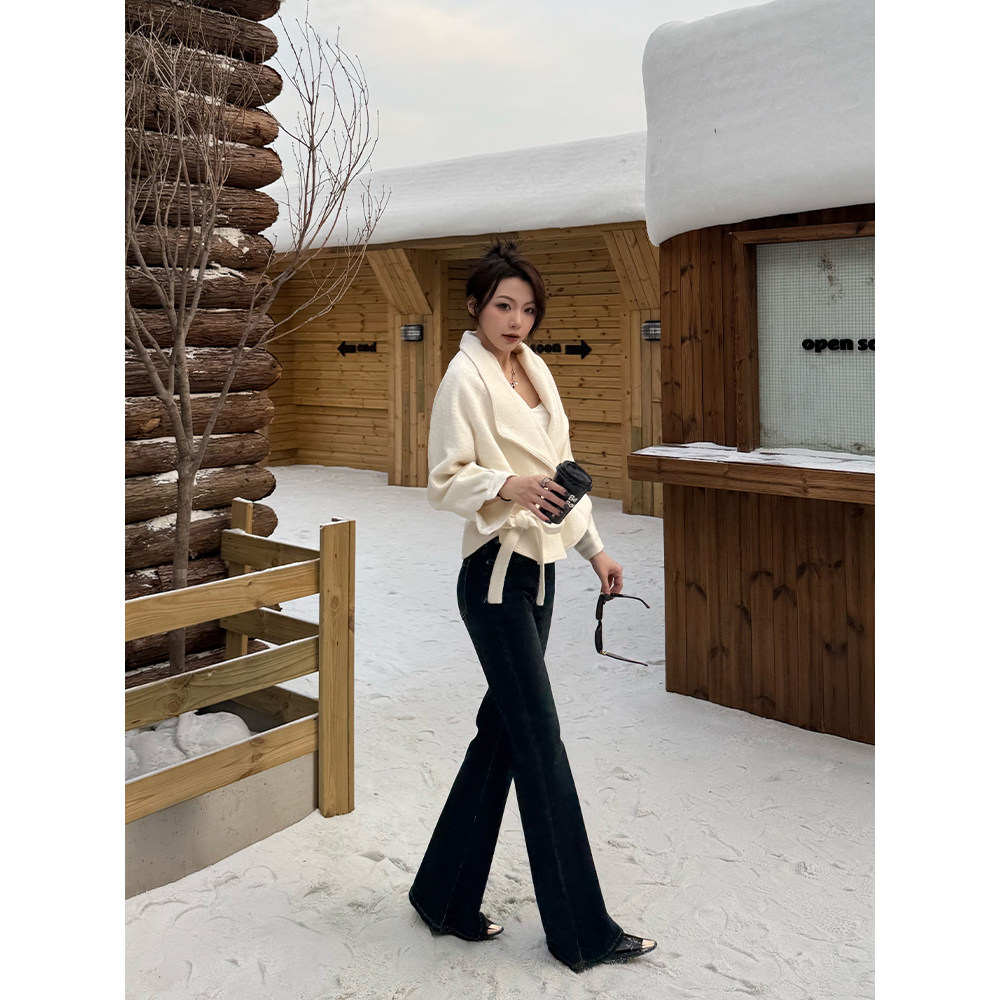 王家有鱼2025秋冬新款不贴腿微喇牛仔裤子女