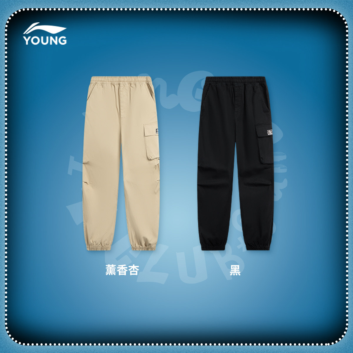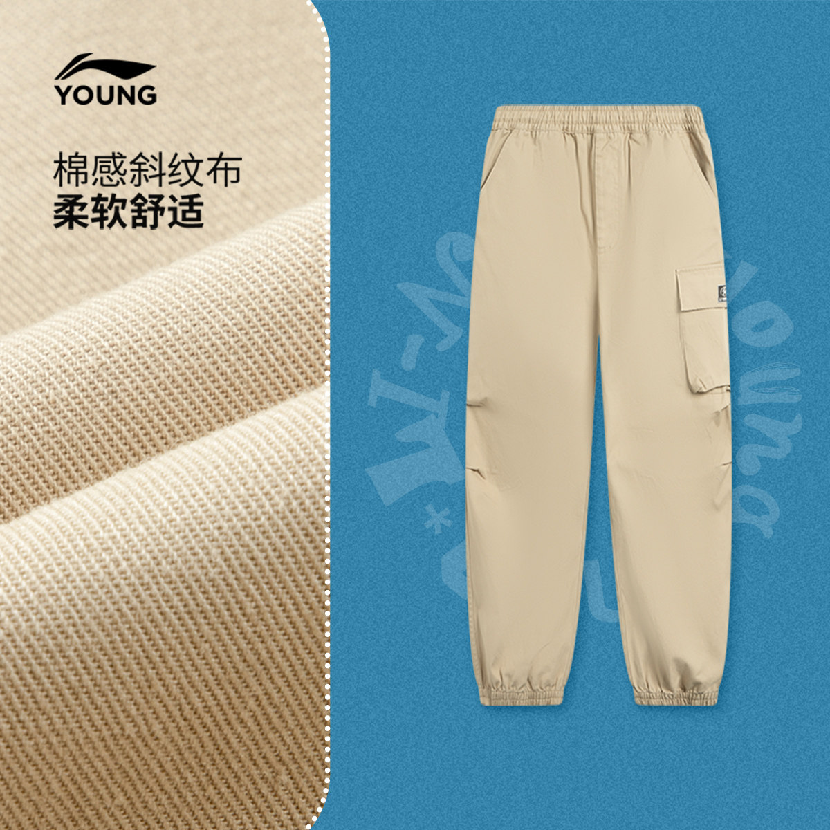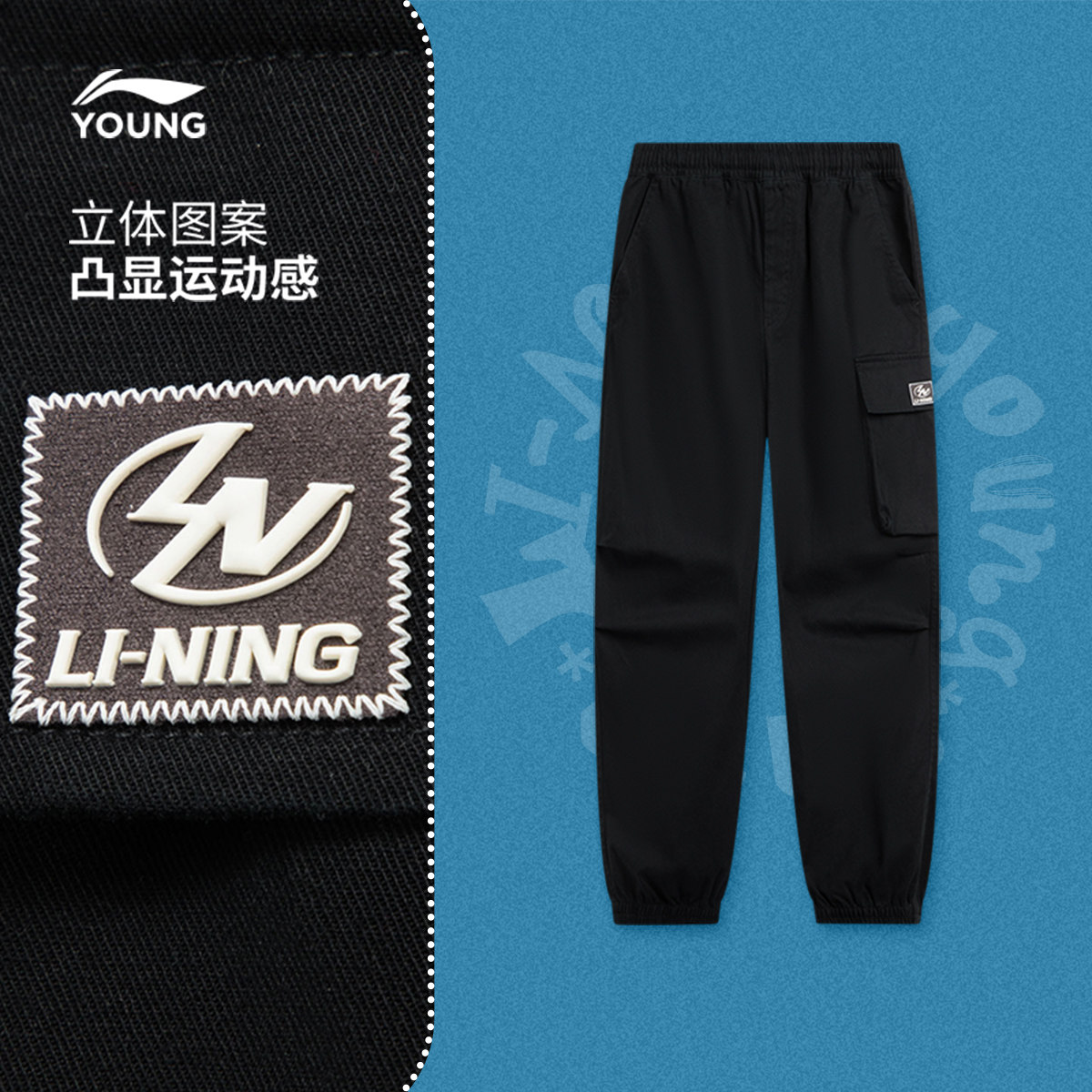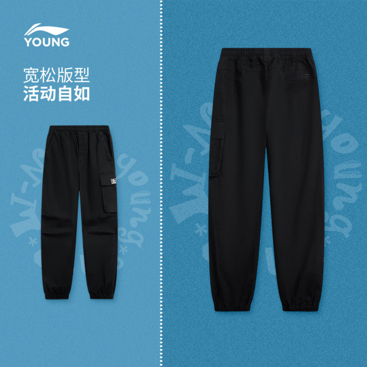 李宁童装休闲裤男女大童运动生活系列青少年春季休闲束脚梭织童装
