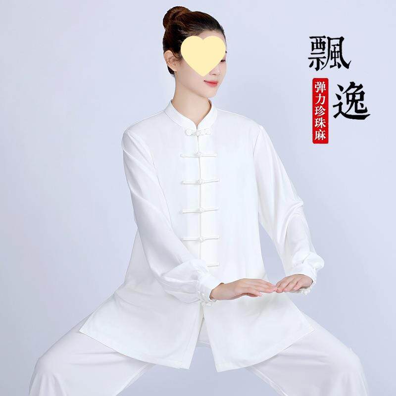 春秋新款太极服女飘逸弹力棉麻气功表演服太极拳练功服男套装