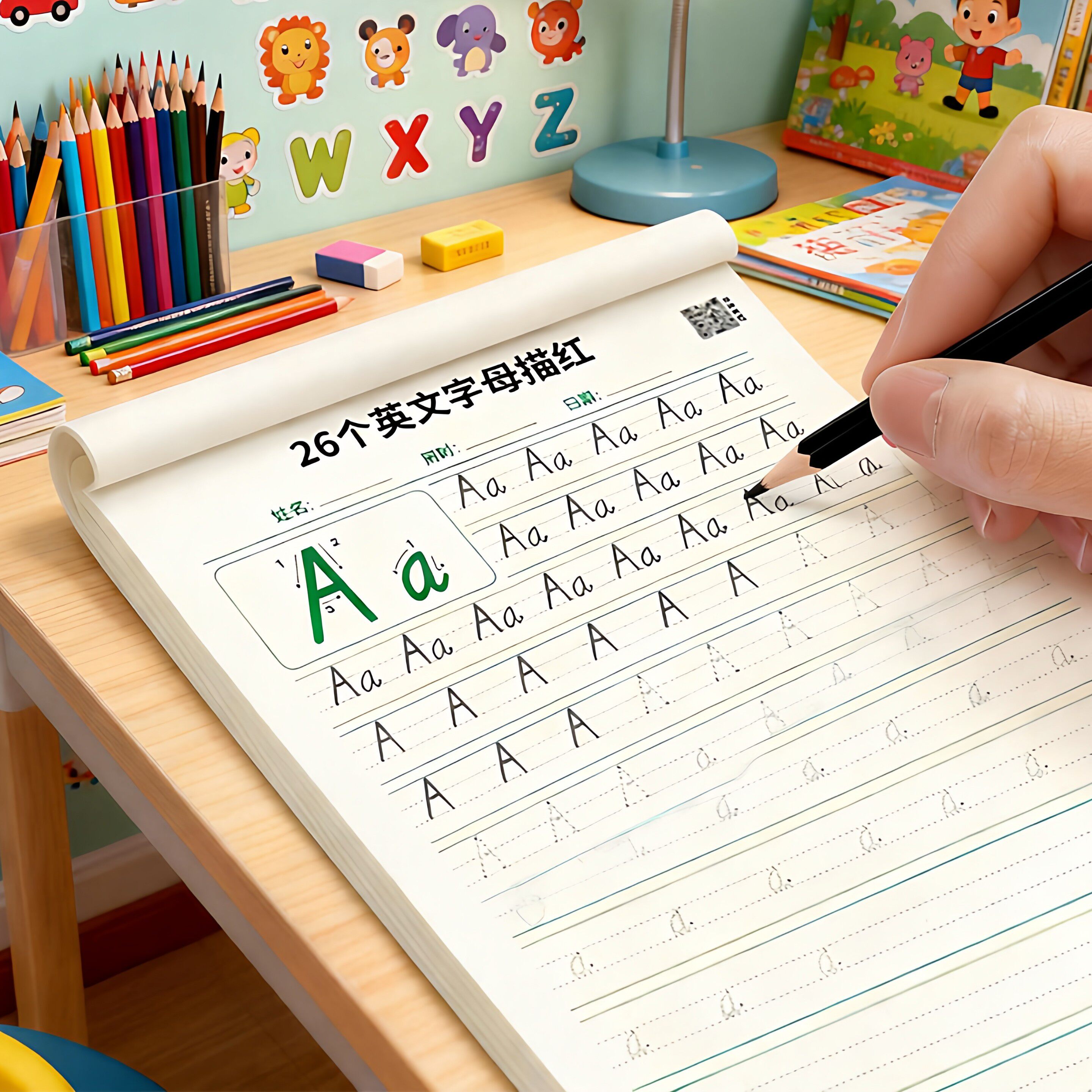 英语26个字母练字帖意大利斜体一年级二三年级英文字帖单词句子