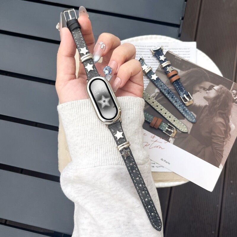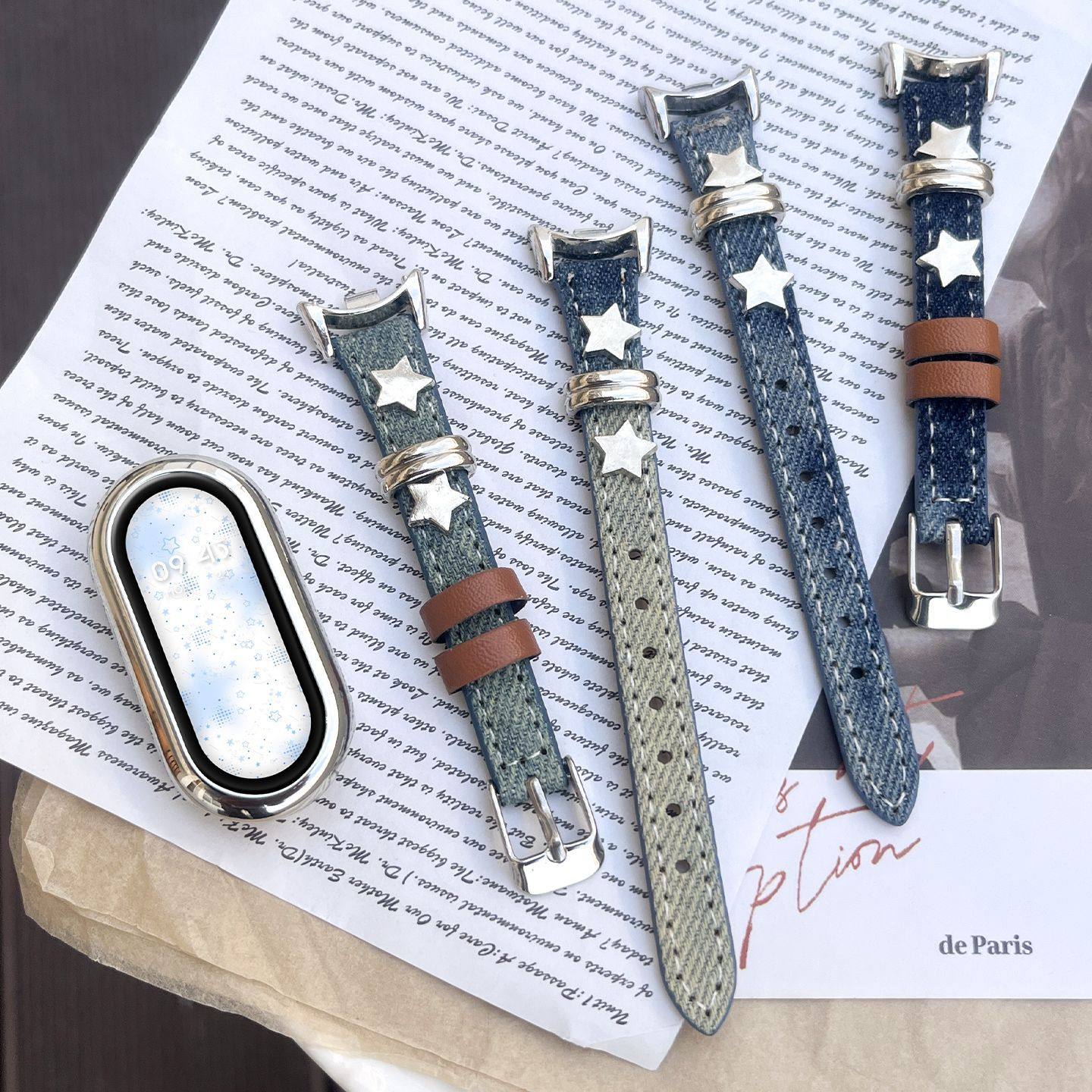 【星尘烙印】适用小米手环10表带做旧牛仔布9/8陶瓷版铆钉星星腕带朋克风xiaomi创意智能运动配件镶钻表壳