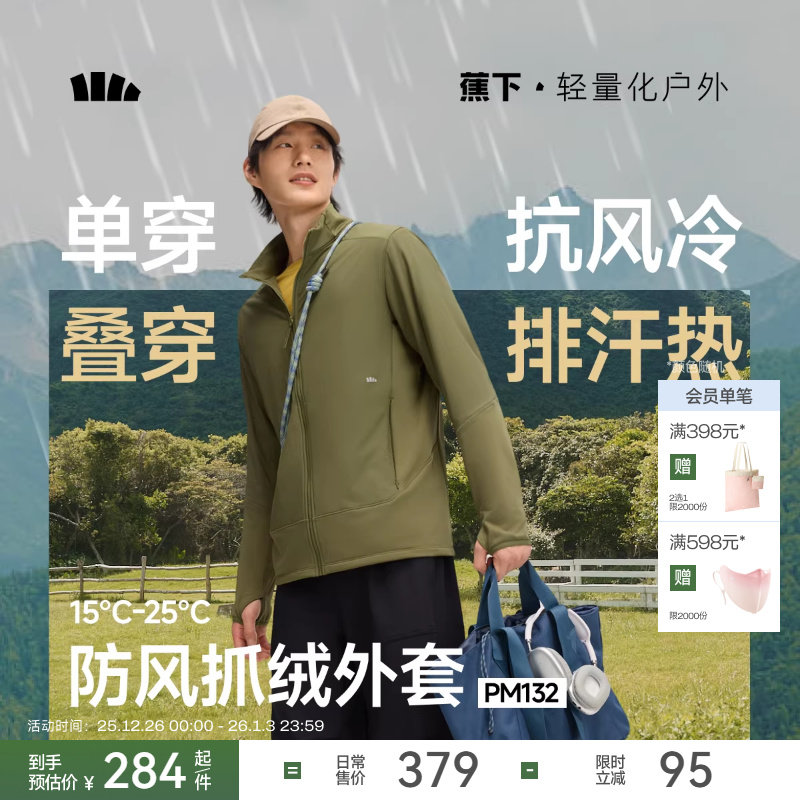 蕉下抓绒外套男款冲锋衣内胆春秋户外防风保暖防泼水立领行政夹克