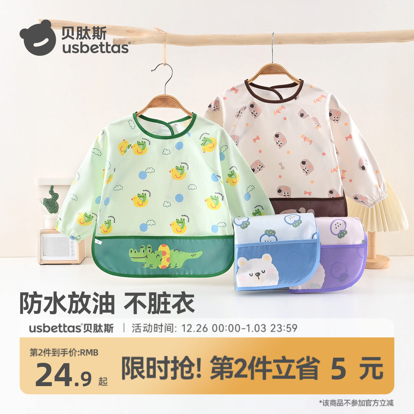 贝肽斯宝宝罩衣吃饭围兜防水防脏婴儿辅食饭兜幼儿园儿童围裙S