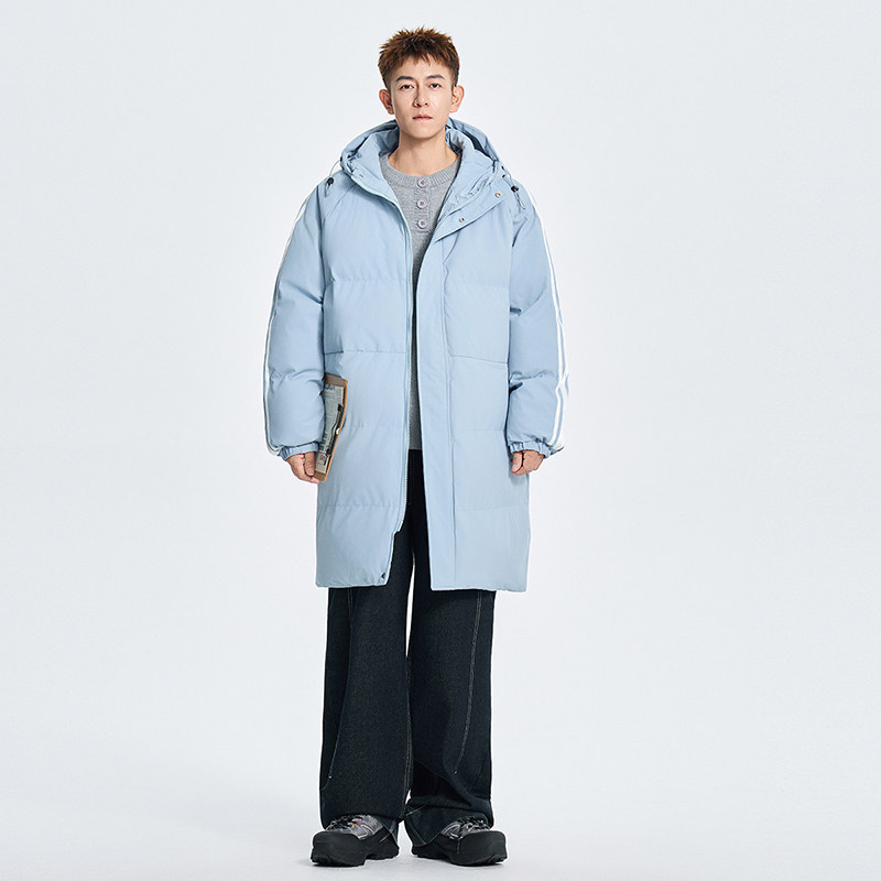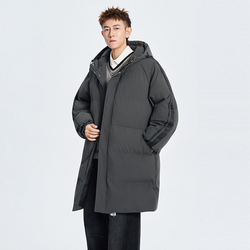 休闲运动风条纹拼接中长款棉衣男冬季加厚保暖连帽棉服外套