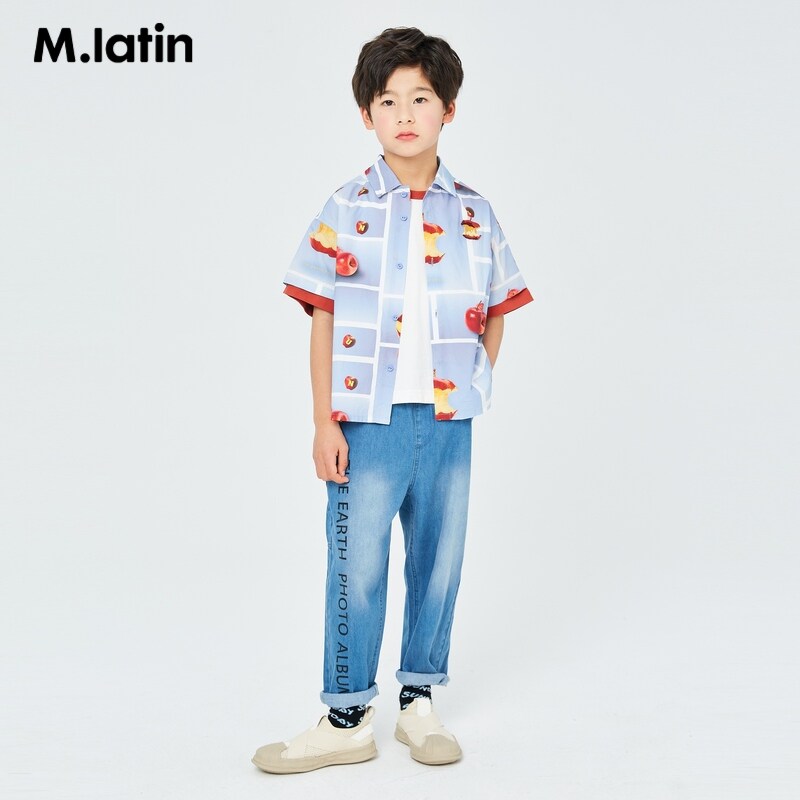 商场同款马拉丁童装儿童牛仔裤夏装新款字母印花透气男童裤子