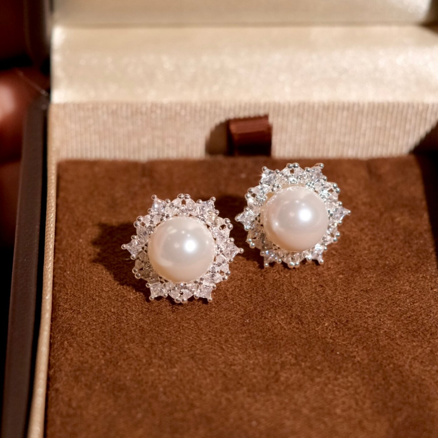 《月色凝脂》轻奢优雅锆石珍珠星芒耳夹简约复古显白耳钉耳环耳饰