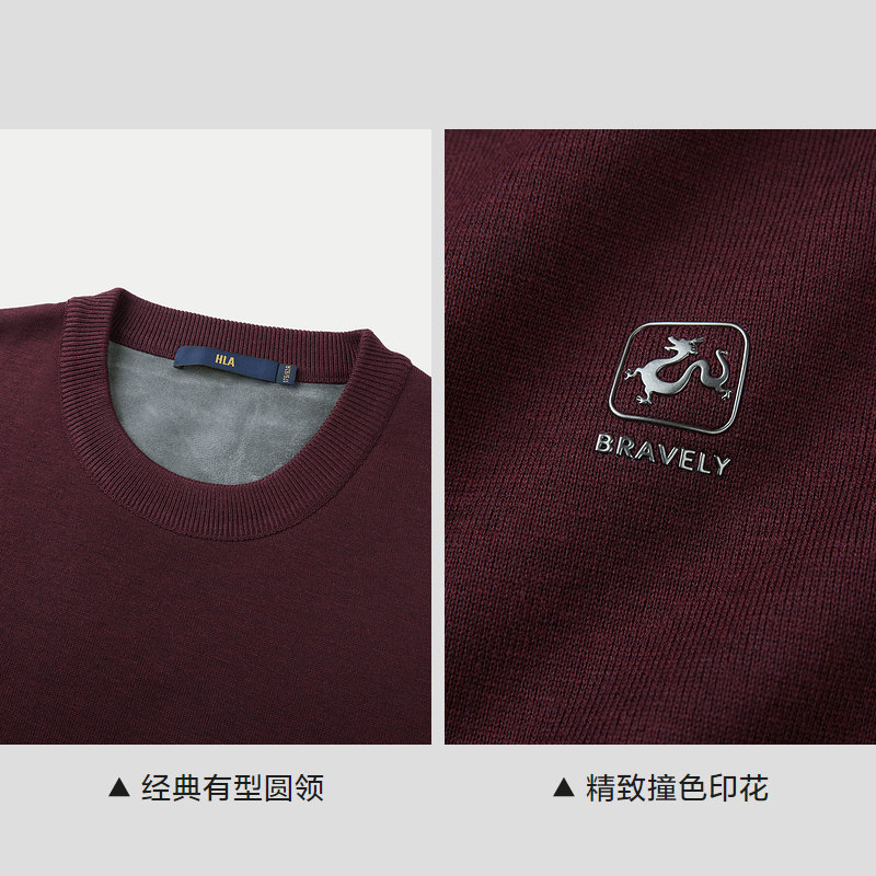 HLA/海澜之家含羊毛圆领针织衫冬加绒加厚宽松撞色印花红色毛衣男