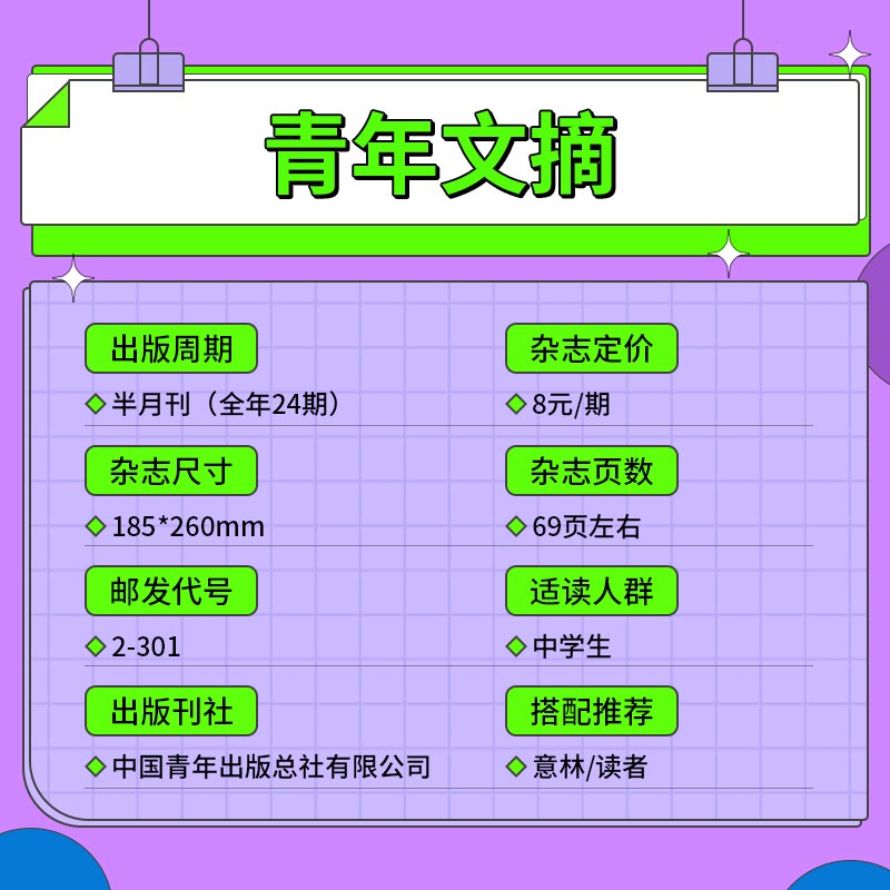 【新期现货/全年订阅】意林+读者+青年文摘2025年-2026年1-12月文学文摘期刊读者杂志心灵鸡汤作文素材中学生作文