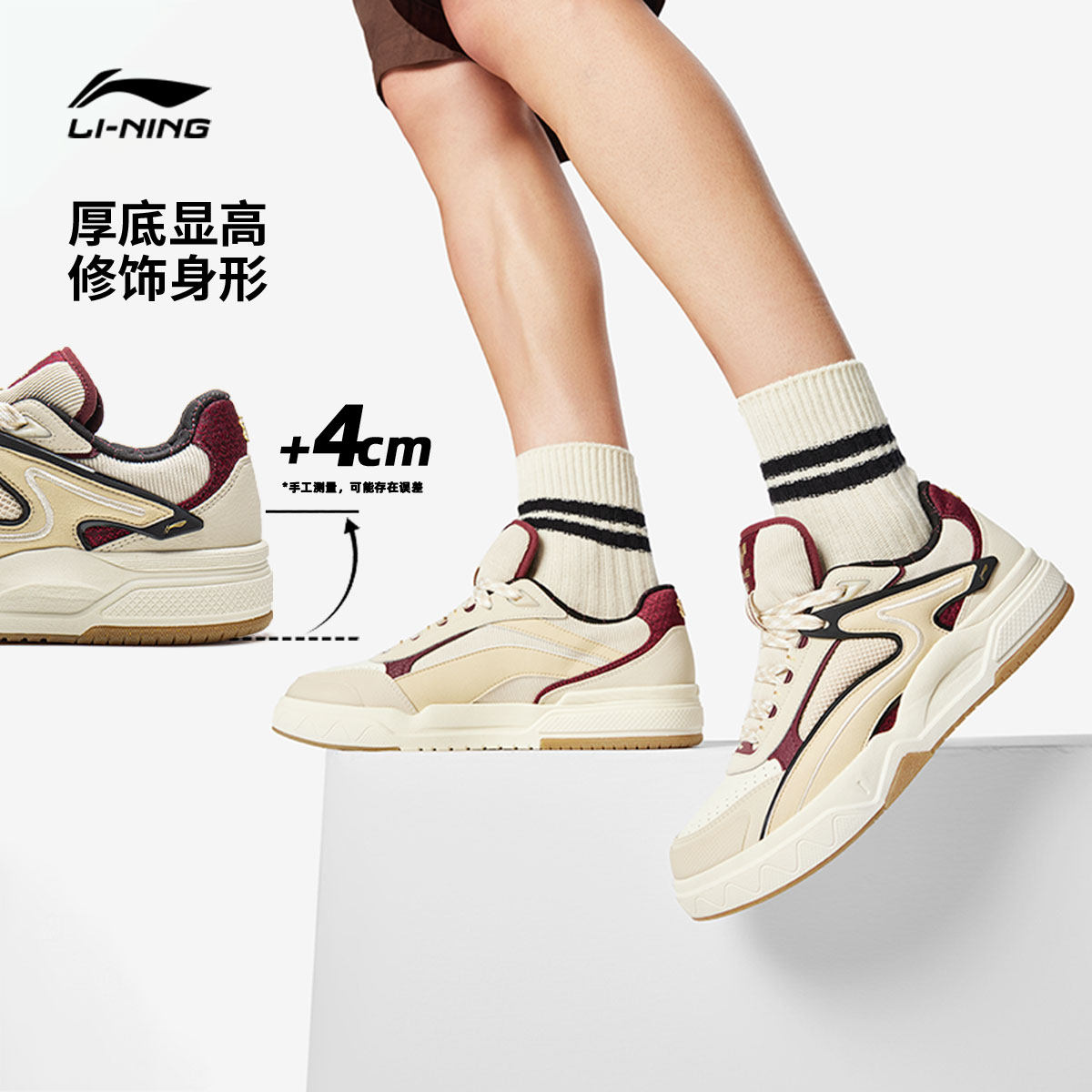 李宁小白鞋 |板鞋女鞋休闲鞋冬季轻便软底舒适百搭鞋子增高运动鞋