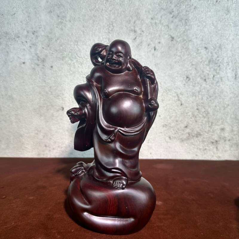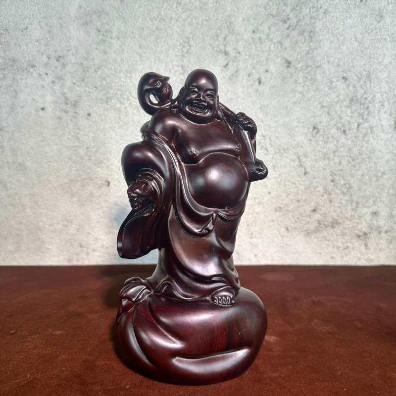 黑檀木雕刻 弥勒像摆件送宝如意笑实木雕刻礼家饰木工艺品