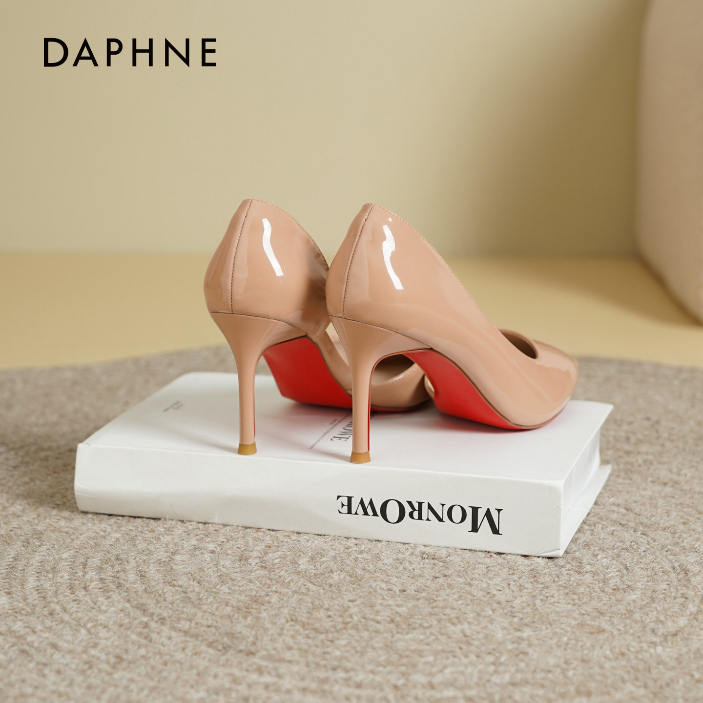 达芙妮裸色高跟鞋女细跟2026新款春季法式气质女鞋红底尖头单鞋女