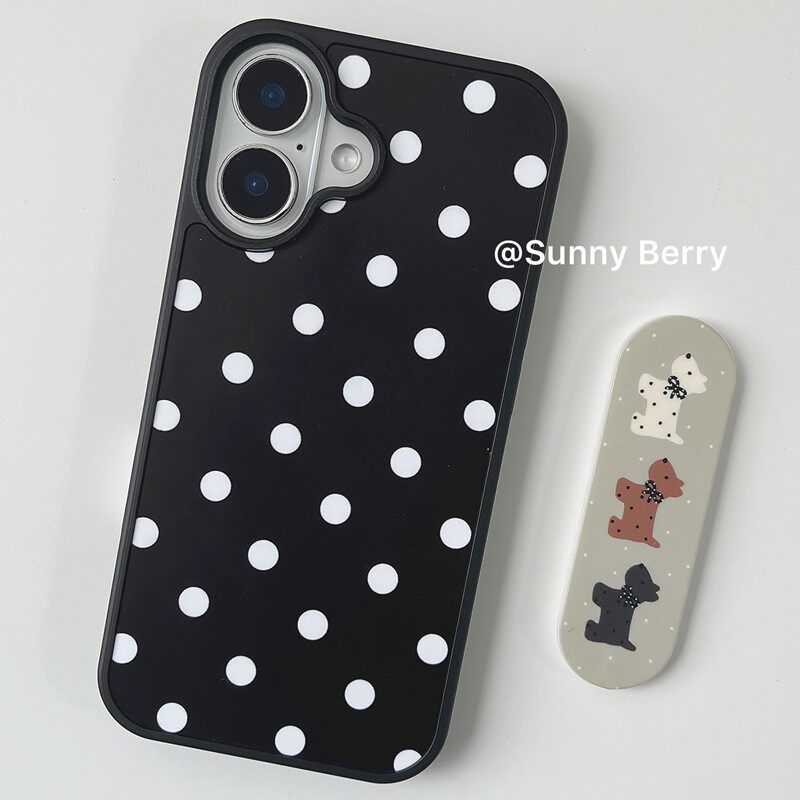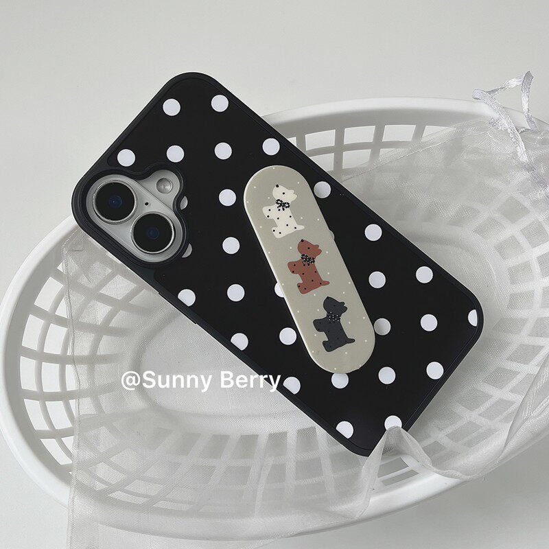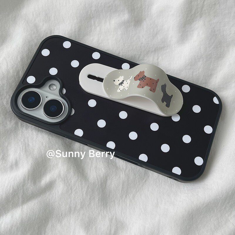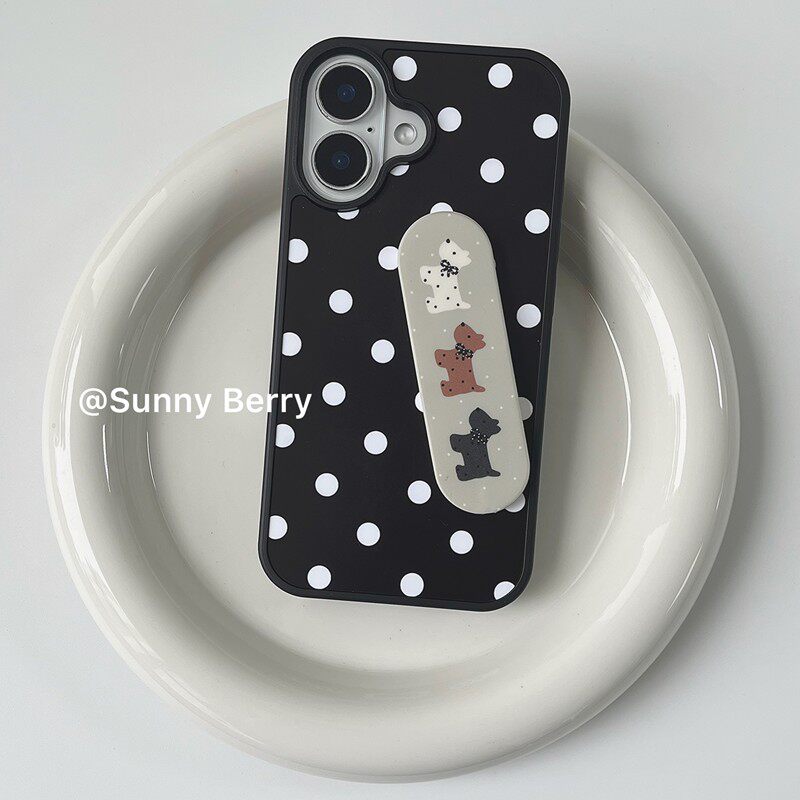向日的浆果ins简约小众少女古早波点元素小狗OK绷带支架适用苹果16pro手机壳iphone15promax/14/13保护套防摔