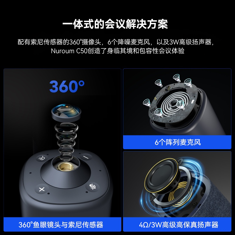 耳目达(Hamedal)C50视频会议摄像头麦克风一体机 AI智能取景全向麦克风远程会议话筒扩音音响拾音器扬声器