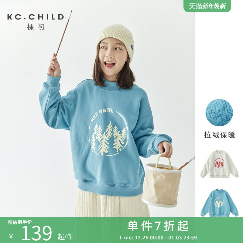 棵初2025年秋冬季女童半高领加绒卫衣森林印花亲子装保暖套头衫