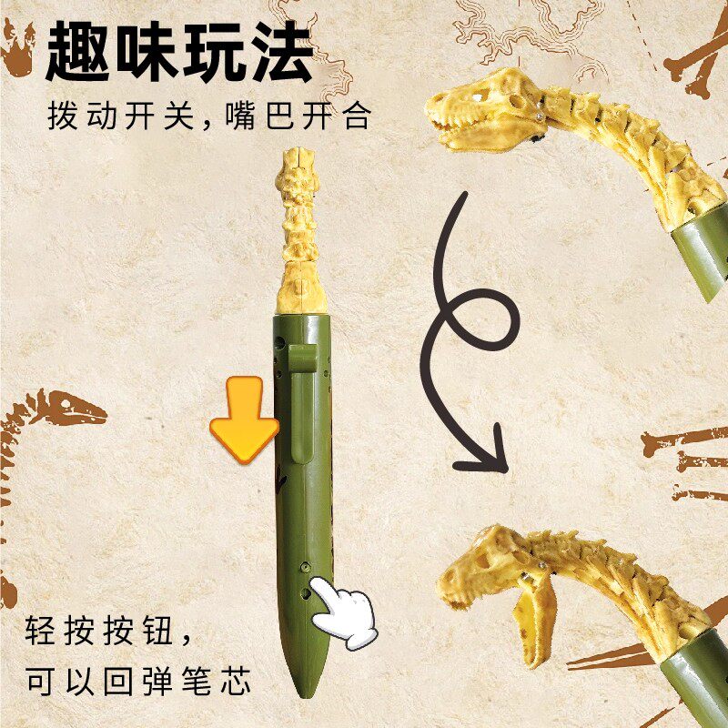 骨骼恐龙笔按压张嘴可夹薯片零食笔创意趣味搞怪解压签字笔签字笔