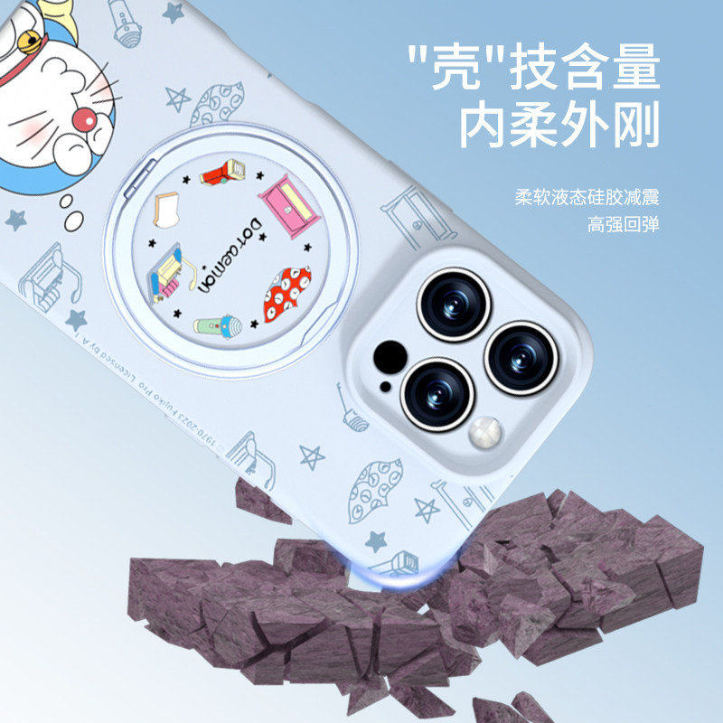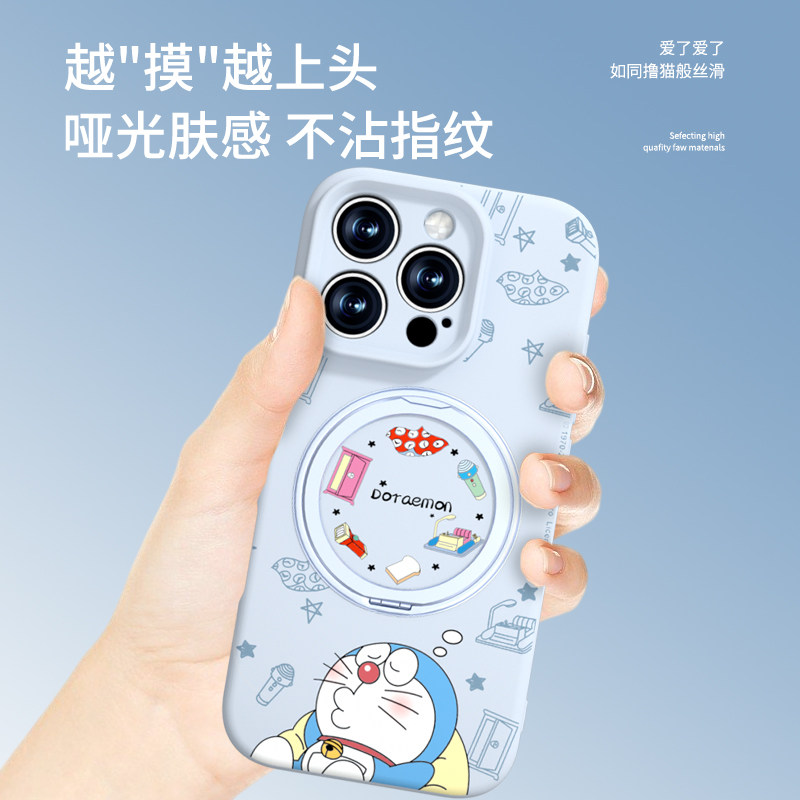 哆啦A梦适用苹果16promax手机壳新款磁吸iPhone15pro带支架14液态硅胶挂绳13保护套12女可爱外壳ip高级感男11