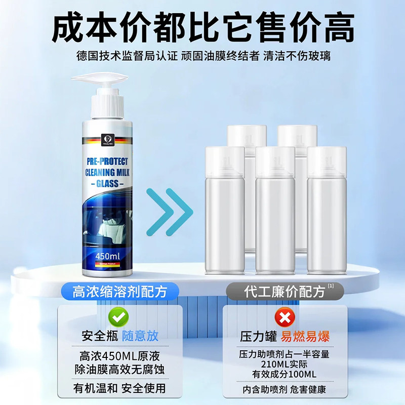 汽车前挡风玻璃油膜清洁剂去除车窗后视镜馍防雨泡沫去油膜清洗剂