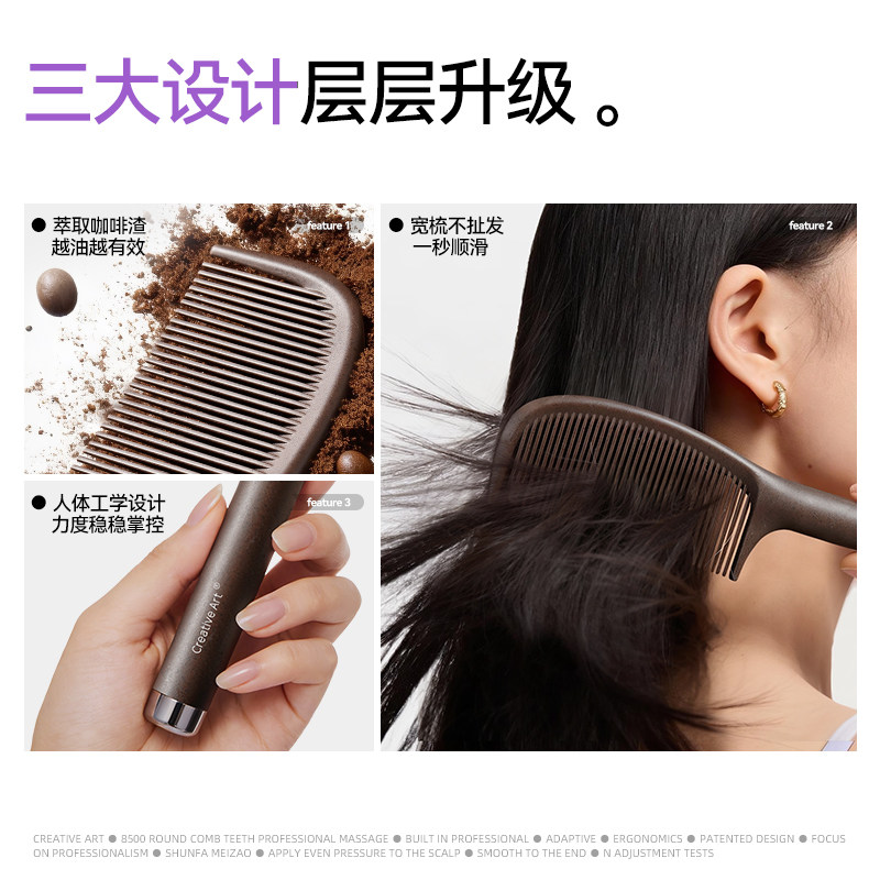 咖啡渣顺发梳子女士专用卷发烫发大齿防静电不打结养发梳宽齿便携