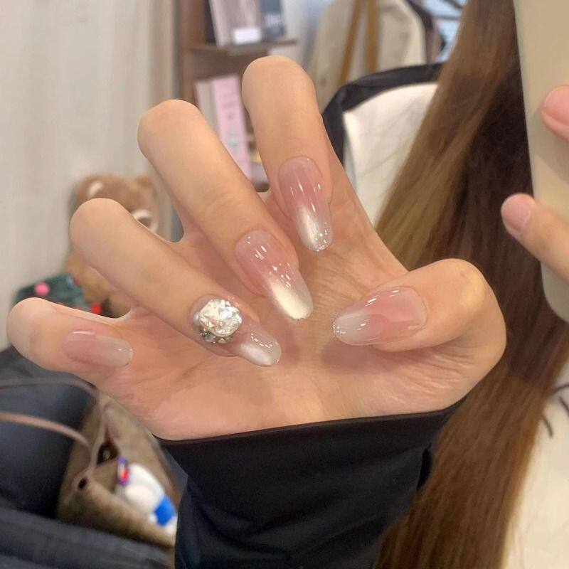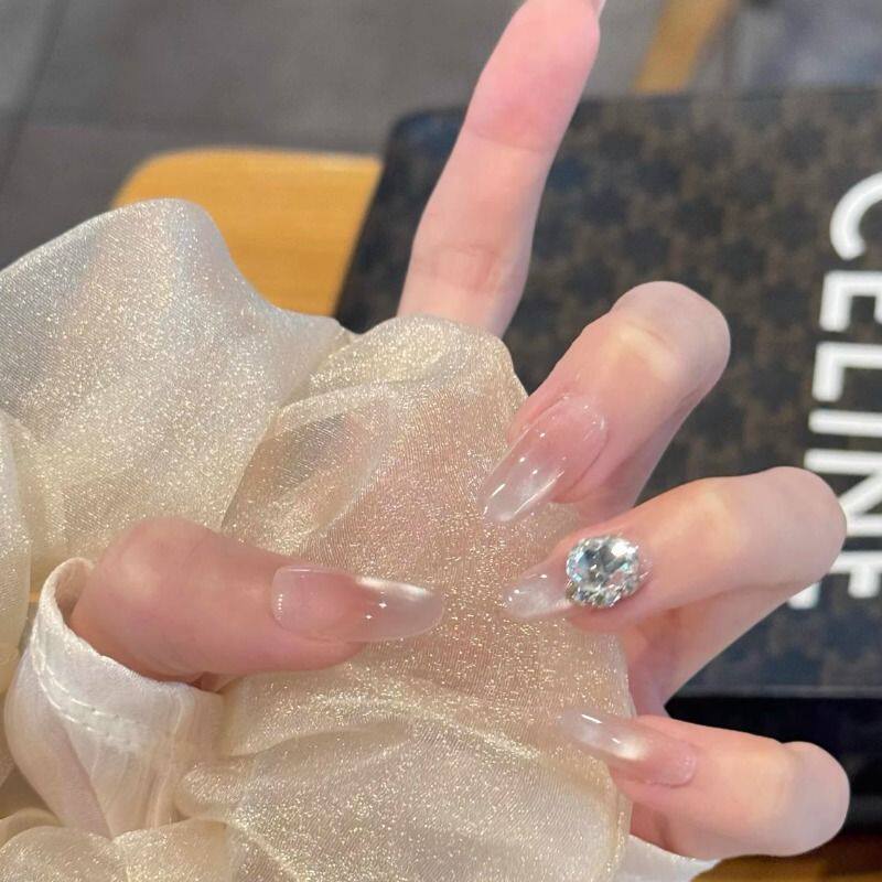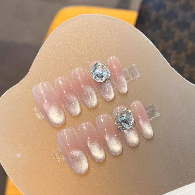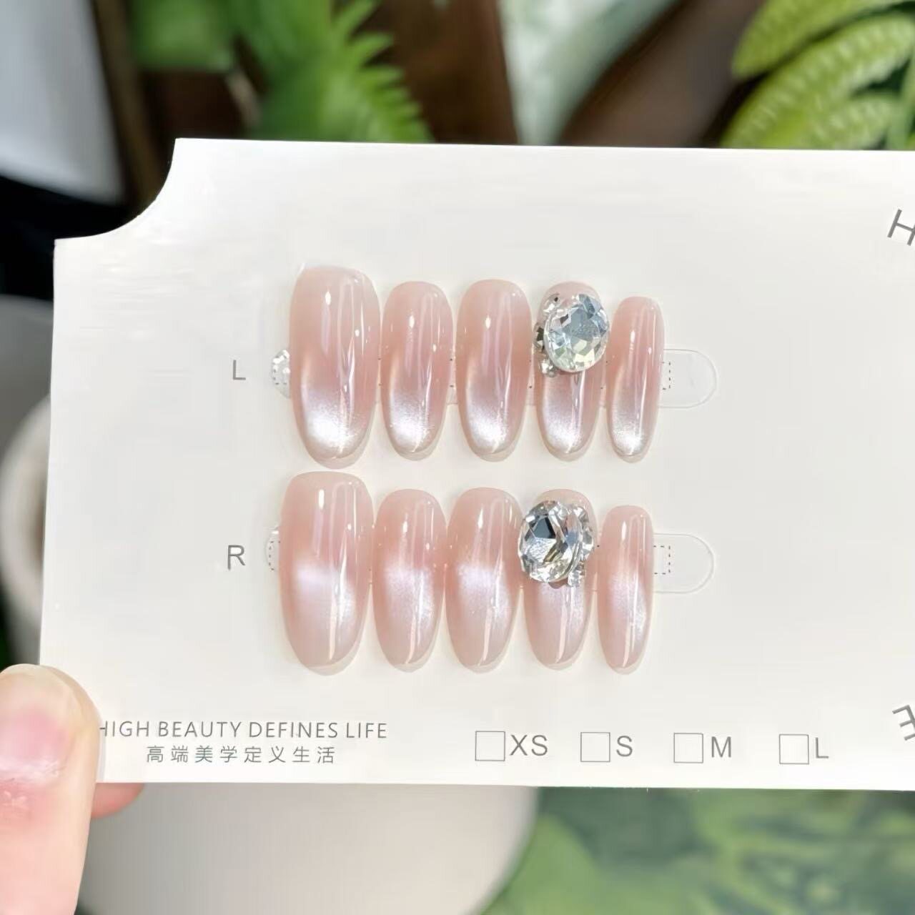 克拉恋人显白追光猫眼带钻手工穿戴甲美甲贴片高级感磨砂爆闪黑皮