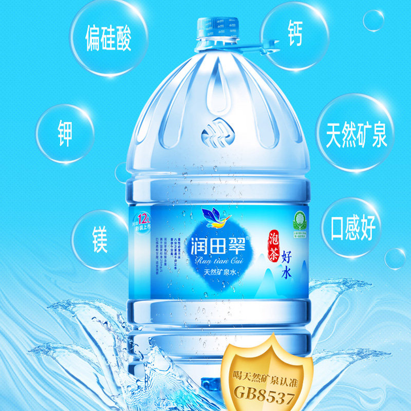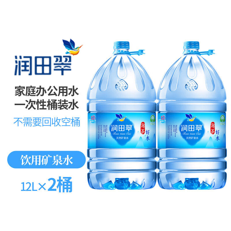 润田翠天然矿泉水12L*2桶特价江西偏硅酸家庭大瓶桶装泡茶饮用水