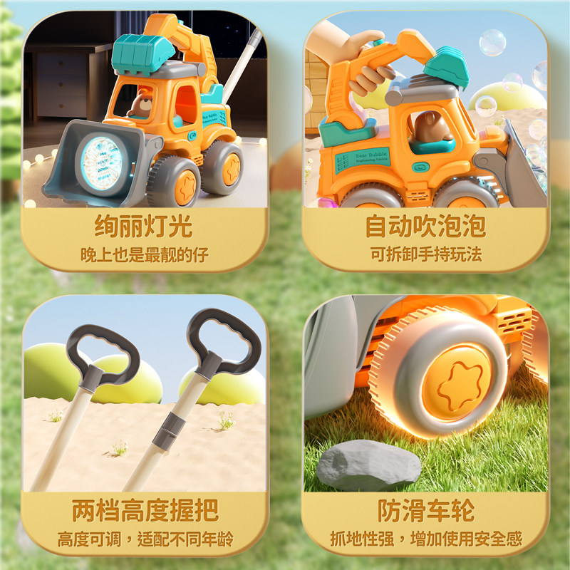 儿童手推电动泡泡机工程车婴儿全自动男女孩子学步车宝宝户外玩具