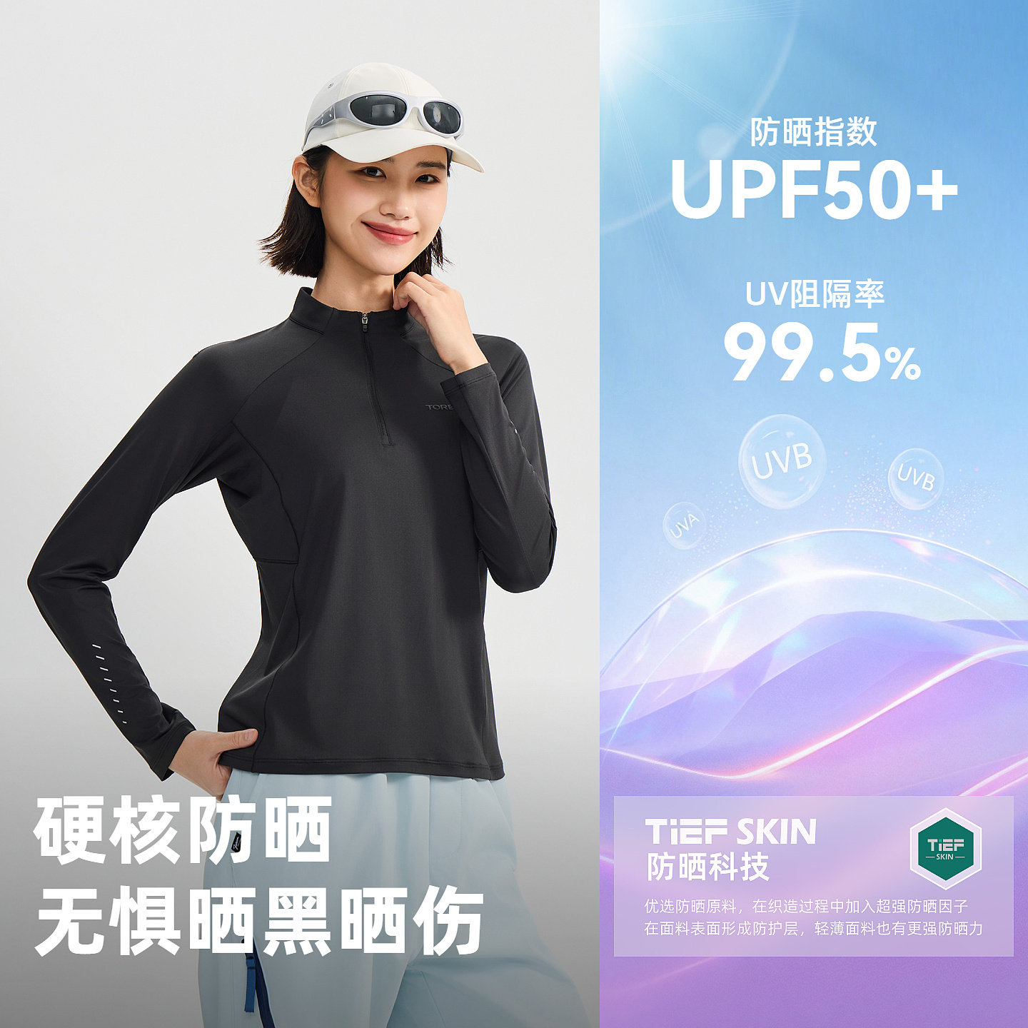 探路者男式功能长T凉感速干透气UPF50+防晒户外徒步运动长袖女