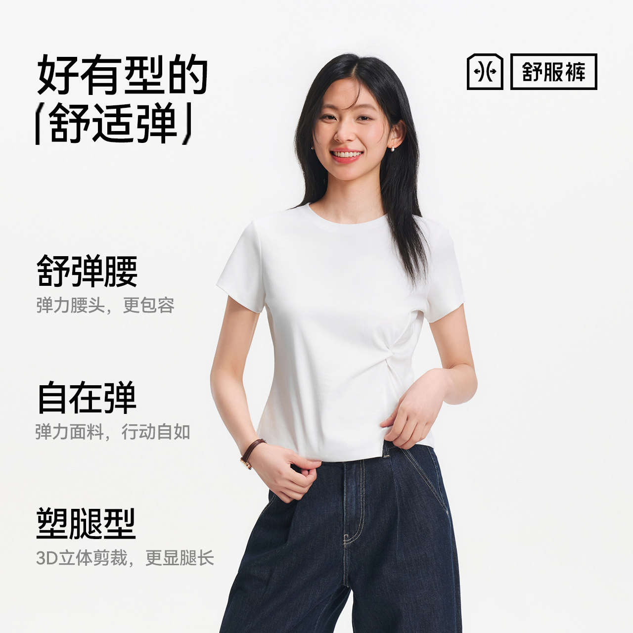 陈都灵丨凉感T森马短袖T恤女修身纯色基础夏季新款圆领白色女装