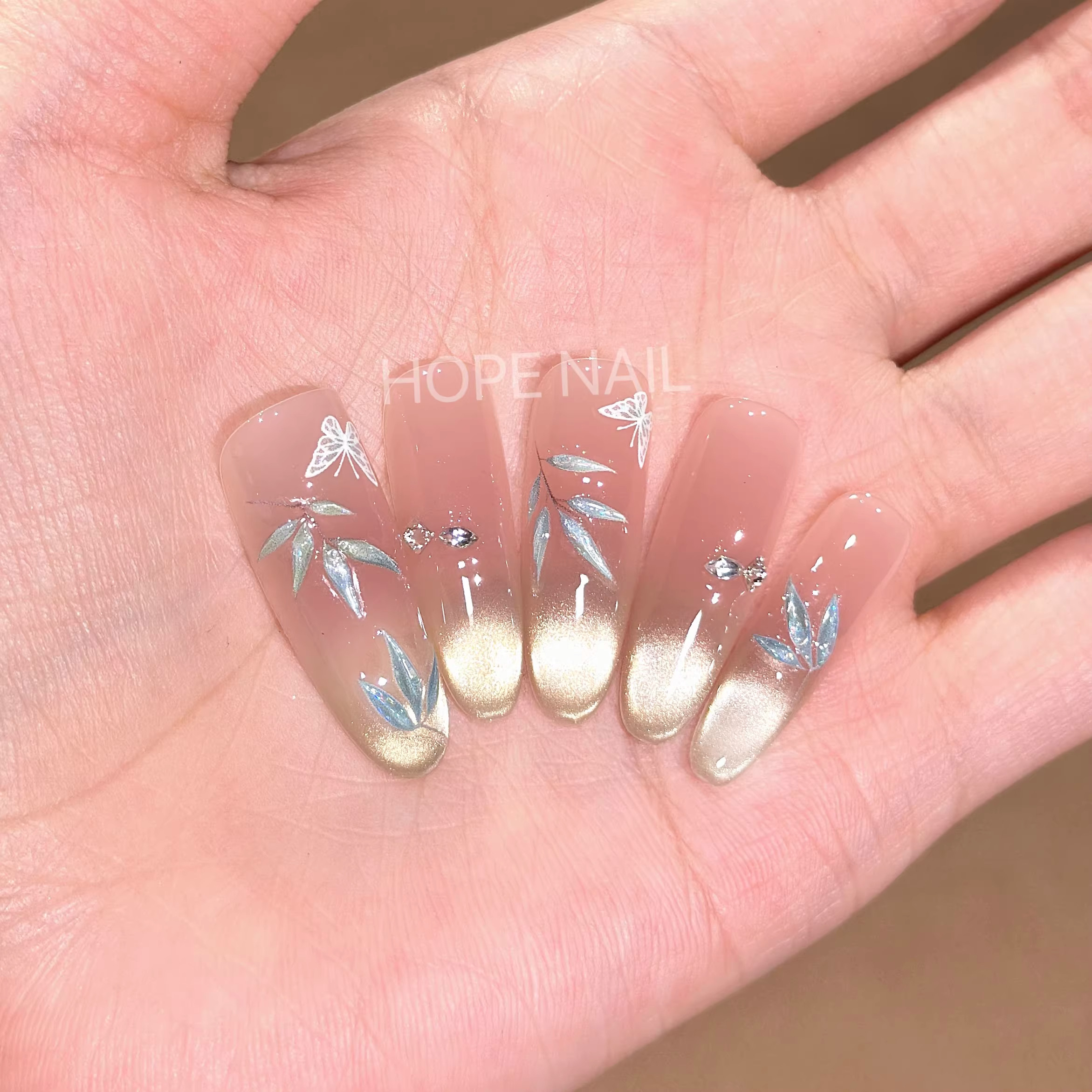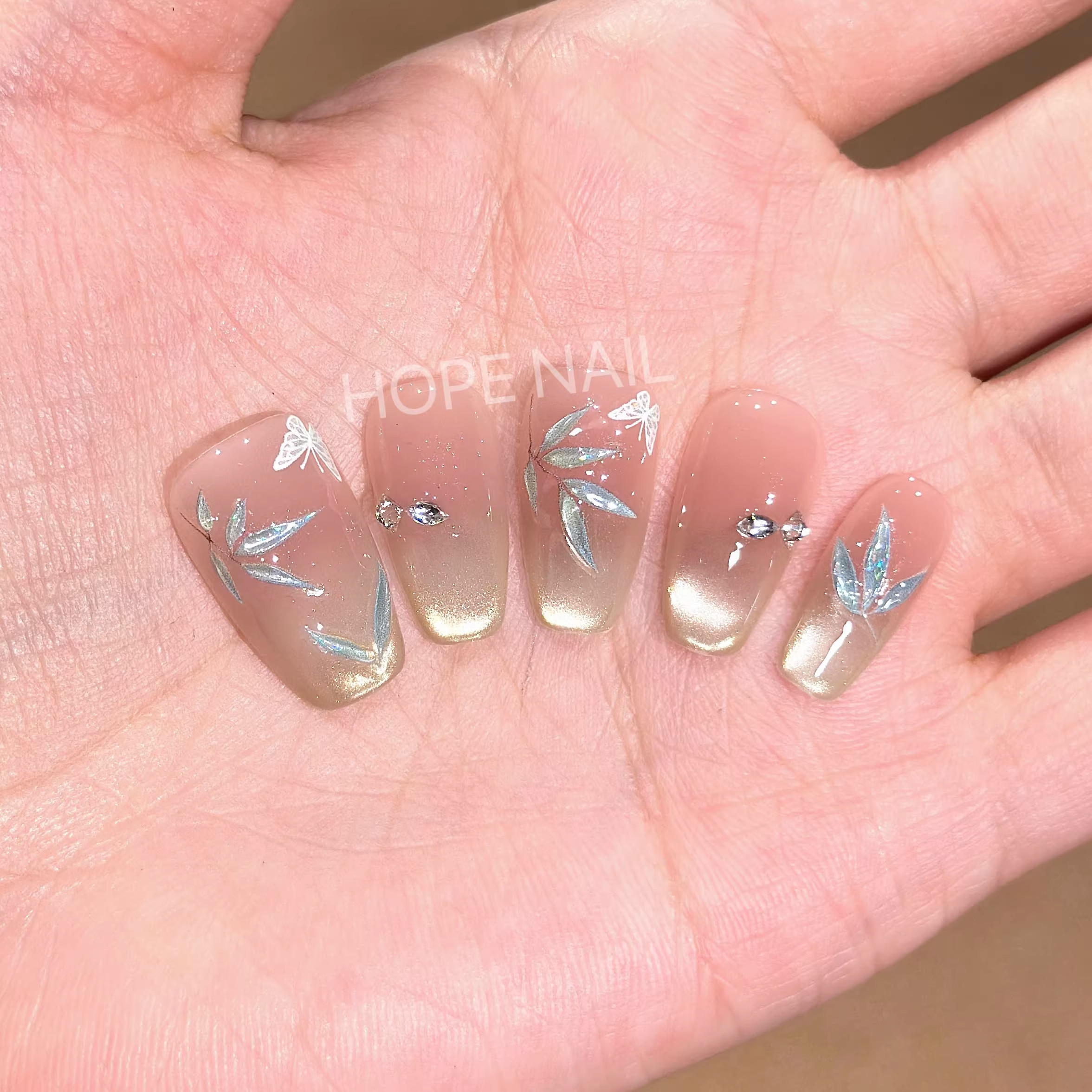 【烟雨江南】国风竹子玻璃珠猫眼手工穿戴甲清冷感蝴蝶腮红美甲贴马年新年款烟花猫眼显白爆闪轻奢高级感贴纸