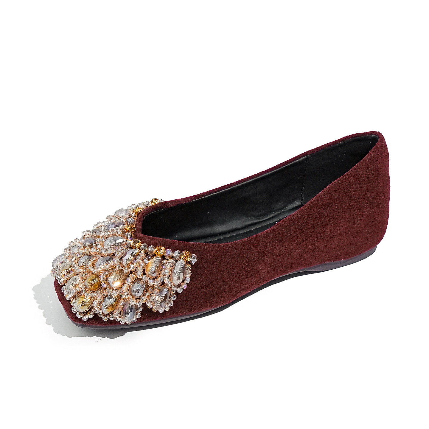 米霏~超重工!法式水钻婚鞋新娘鞋女不累脚平底加绒单鞋大码女鞋