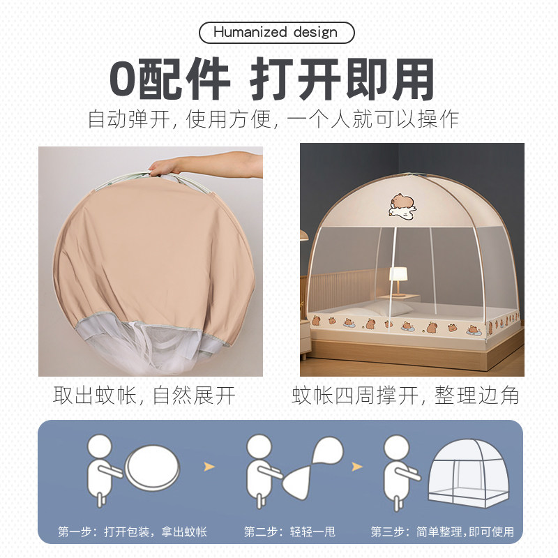 蒙古包蚊帐家用卧室2025免安装儿童防摔尘可折叠纹帐夏季防蚊新款