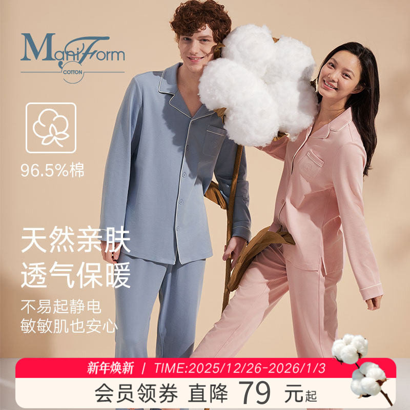 曼妮芬棉质生活冬季棉睡衣女居家可外穿不易起静电男士套装家居服