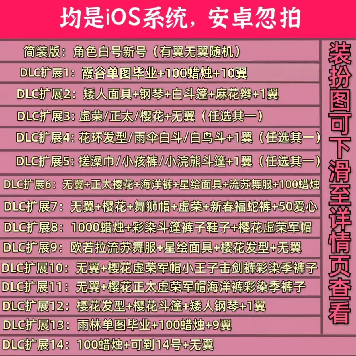 sky光遇无翼ios蜡烛号樱花正太小号官服虚荣海洋武士裤矮人钢琴号