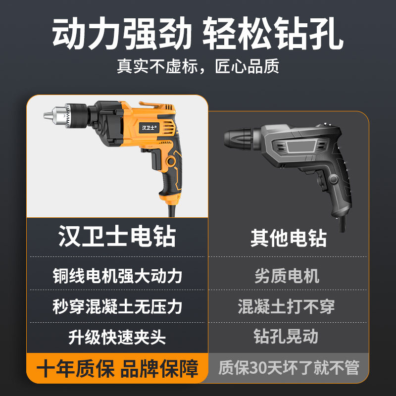 汉卫士手电钻冲击钻家用小手枪钻工具多功能电锤充电式电动螺丝刀