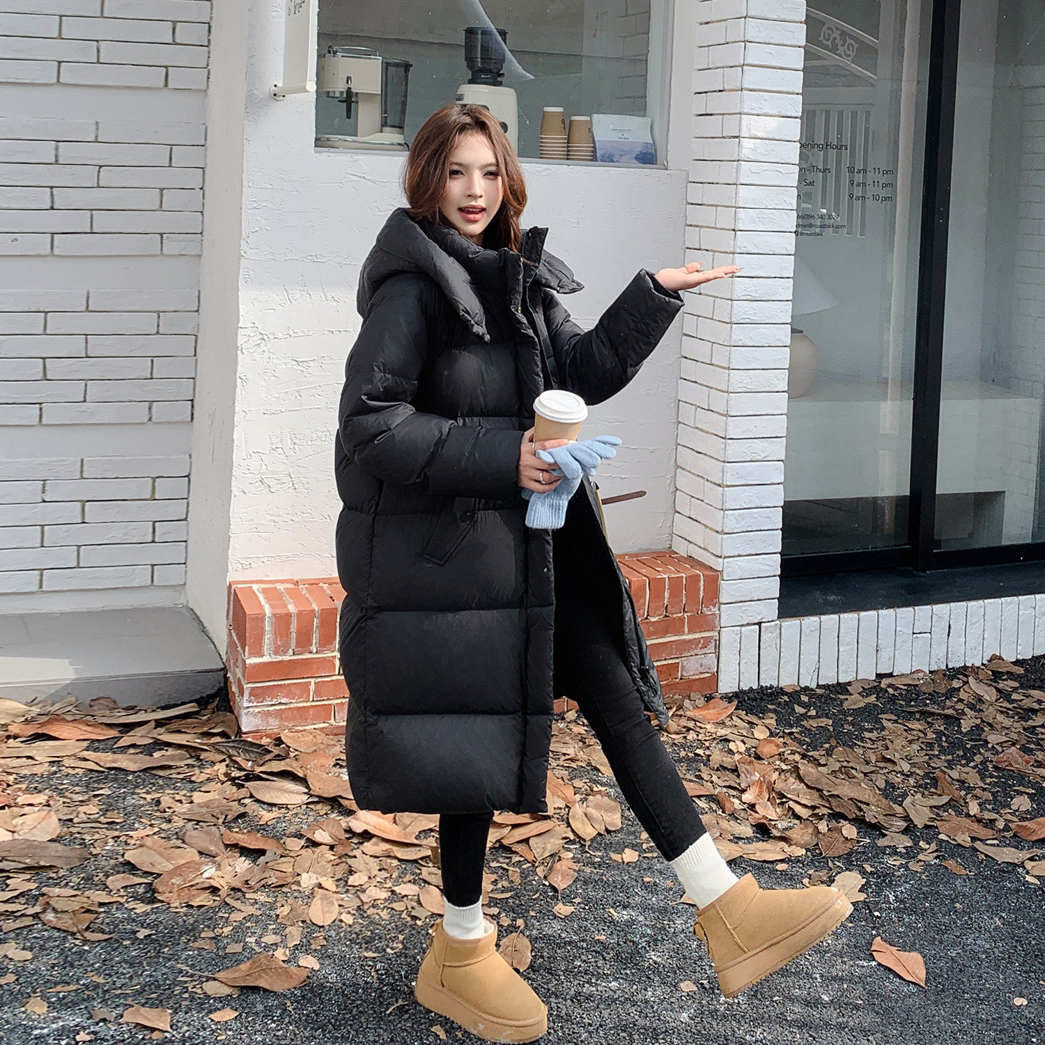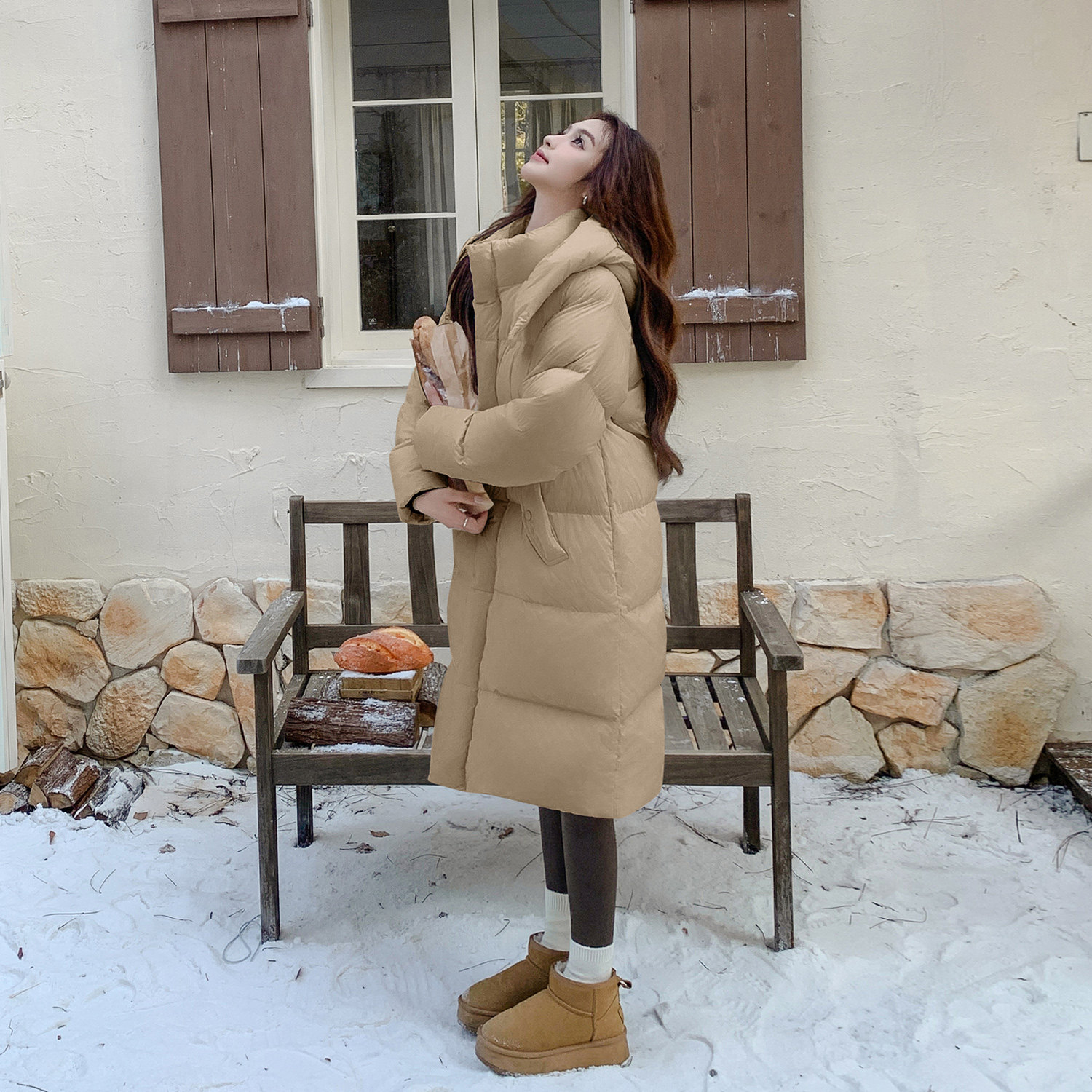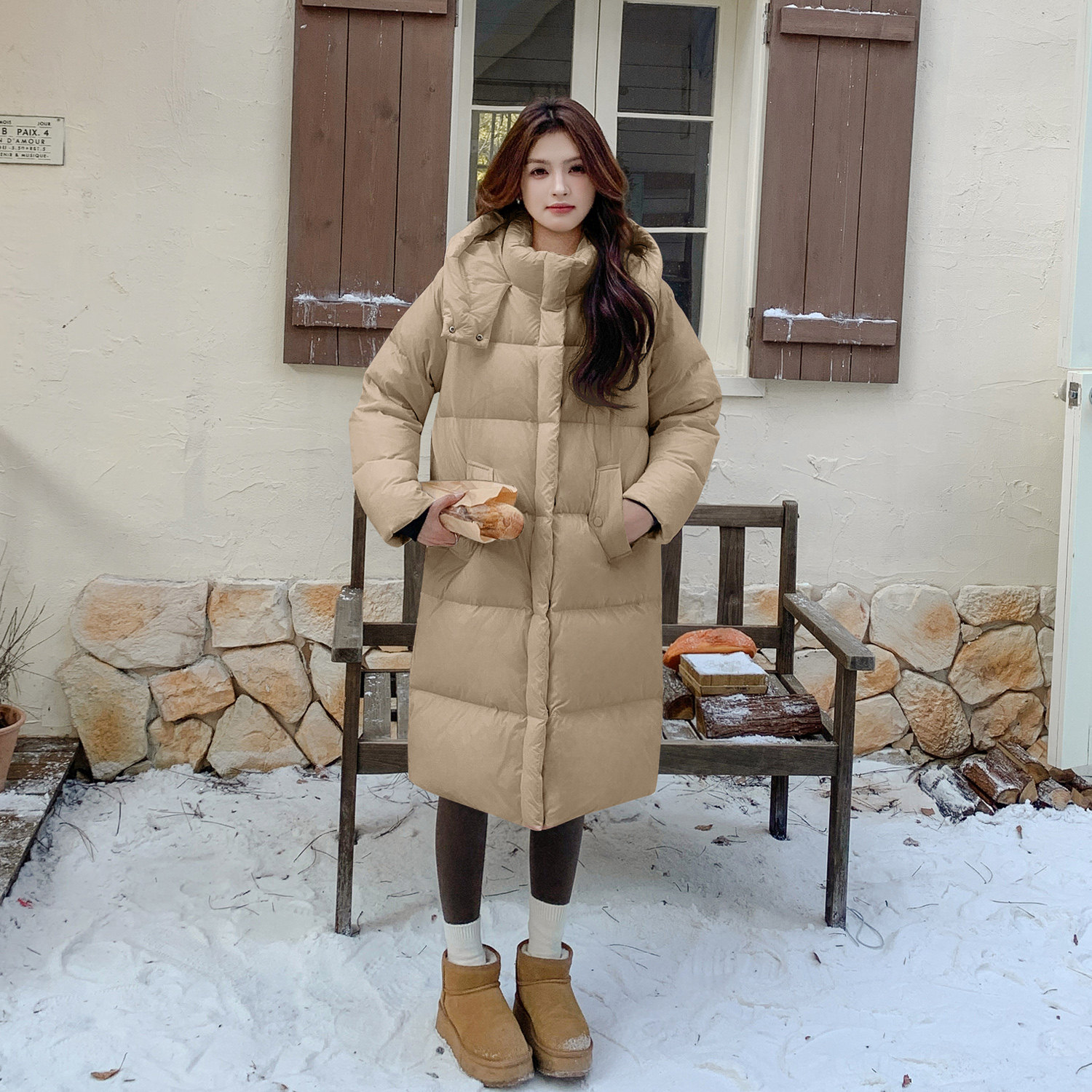 顾名思义羽绒服女过膝中长款2025冬季新款连帽90白鸭绒加厚外套