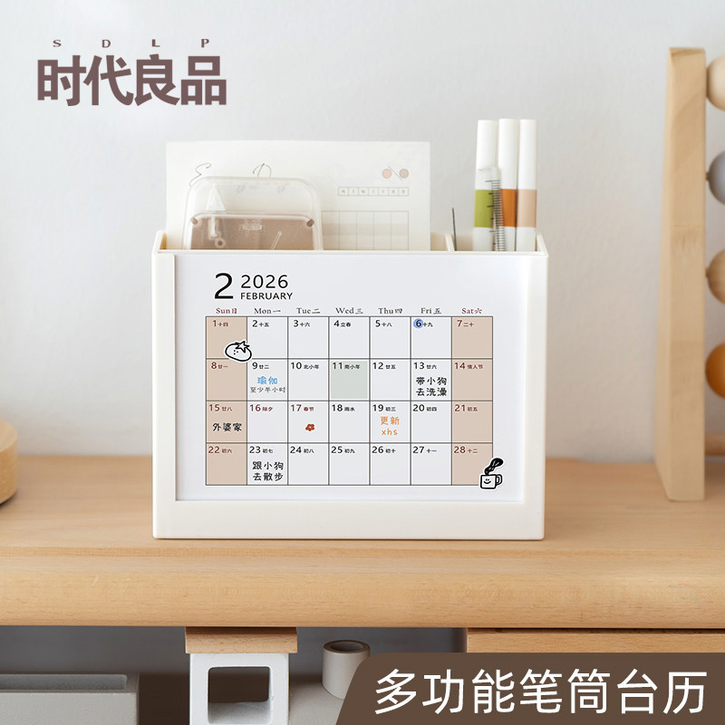 简约2026年台历记事多功能笔筒桌面收纳盒2025年日历可企业定制