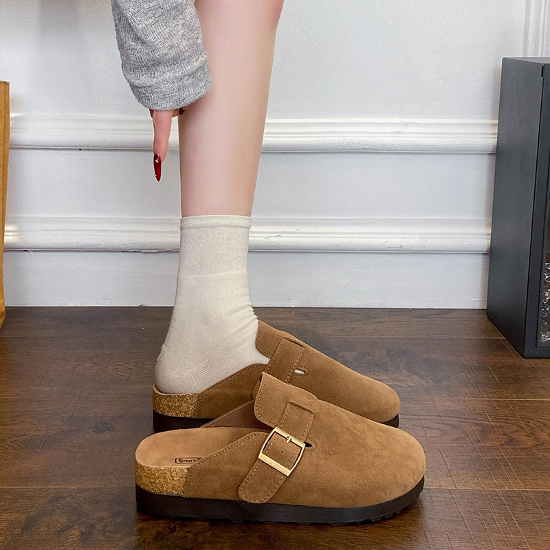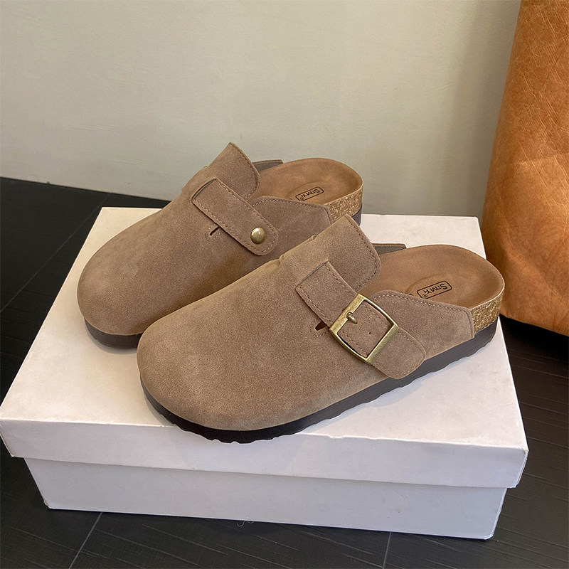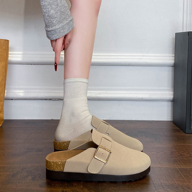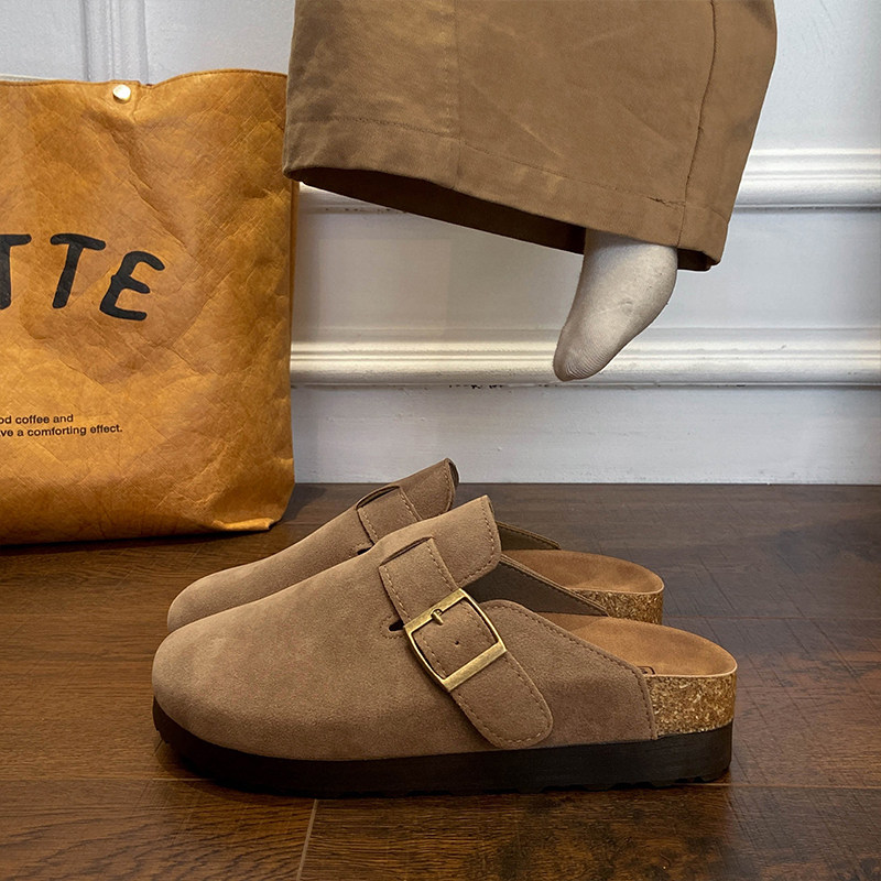 厚底勃肯鞋女外穿2026春季包头半拖百搭懒人鞋软木底单鞋卡其色
