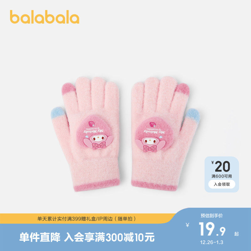 【三丽鸥IP联名】巴拉巴拉儿童手套女童五指萌趣冬季保暖时尚潮款