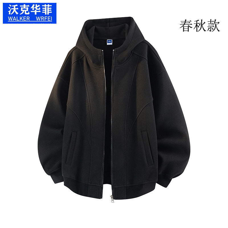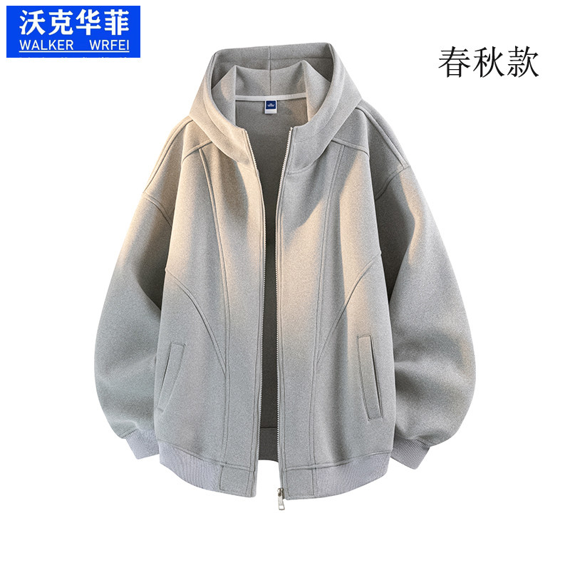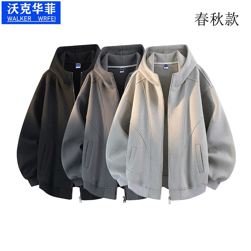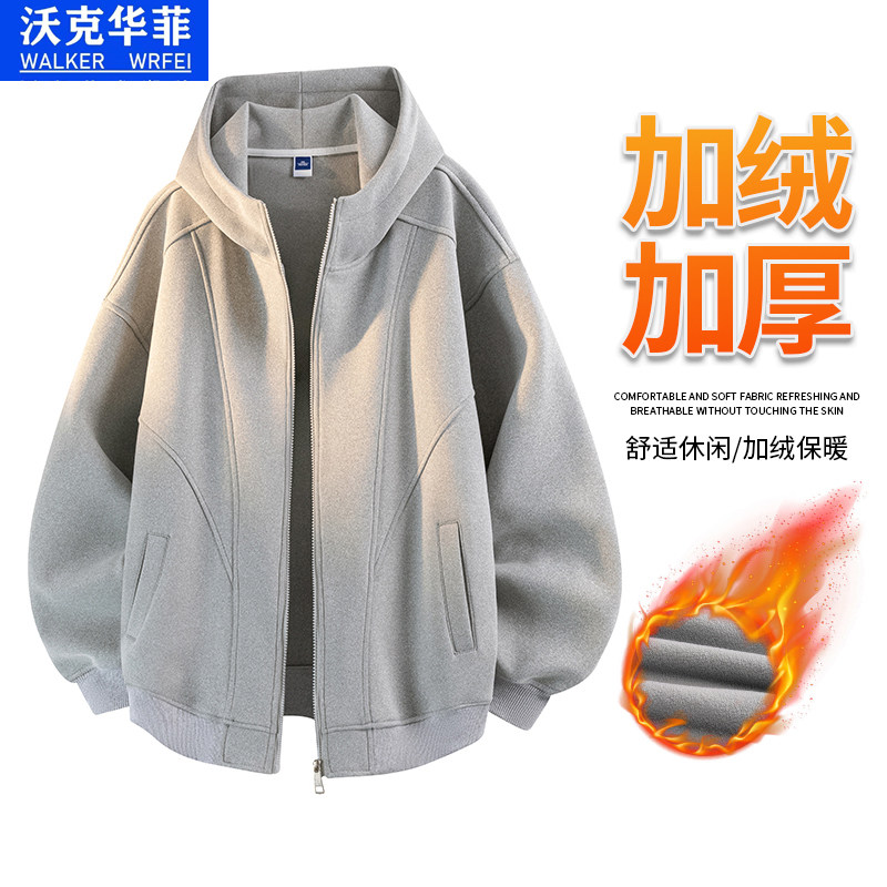 沃克华菲美式加绒连帽开衫水洗工装夹克男宽松休闲春秋连帽外套男