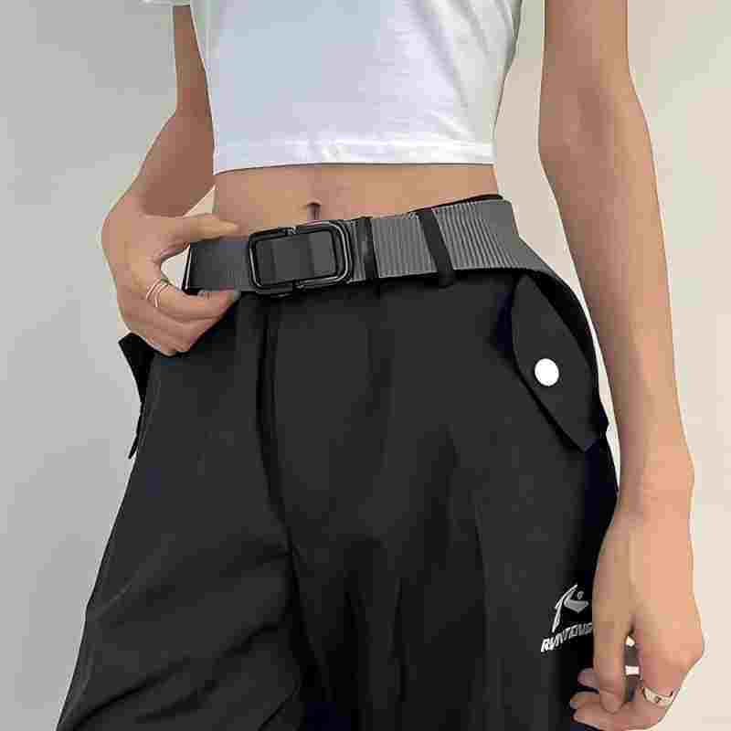 对插扣弹力皮带男自动扣时尚百搭潮流男士腰带户外尼龙帆布裤腰带