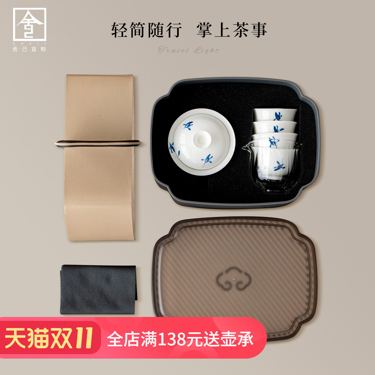 便捷式户外喝茶套装秋水兰花陶瓷盖碗茶杯收纳盒带茶盘旅行功夫茶