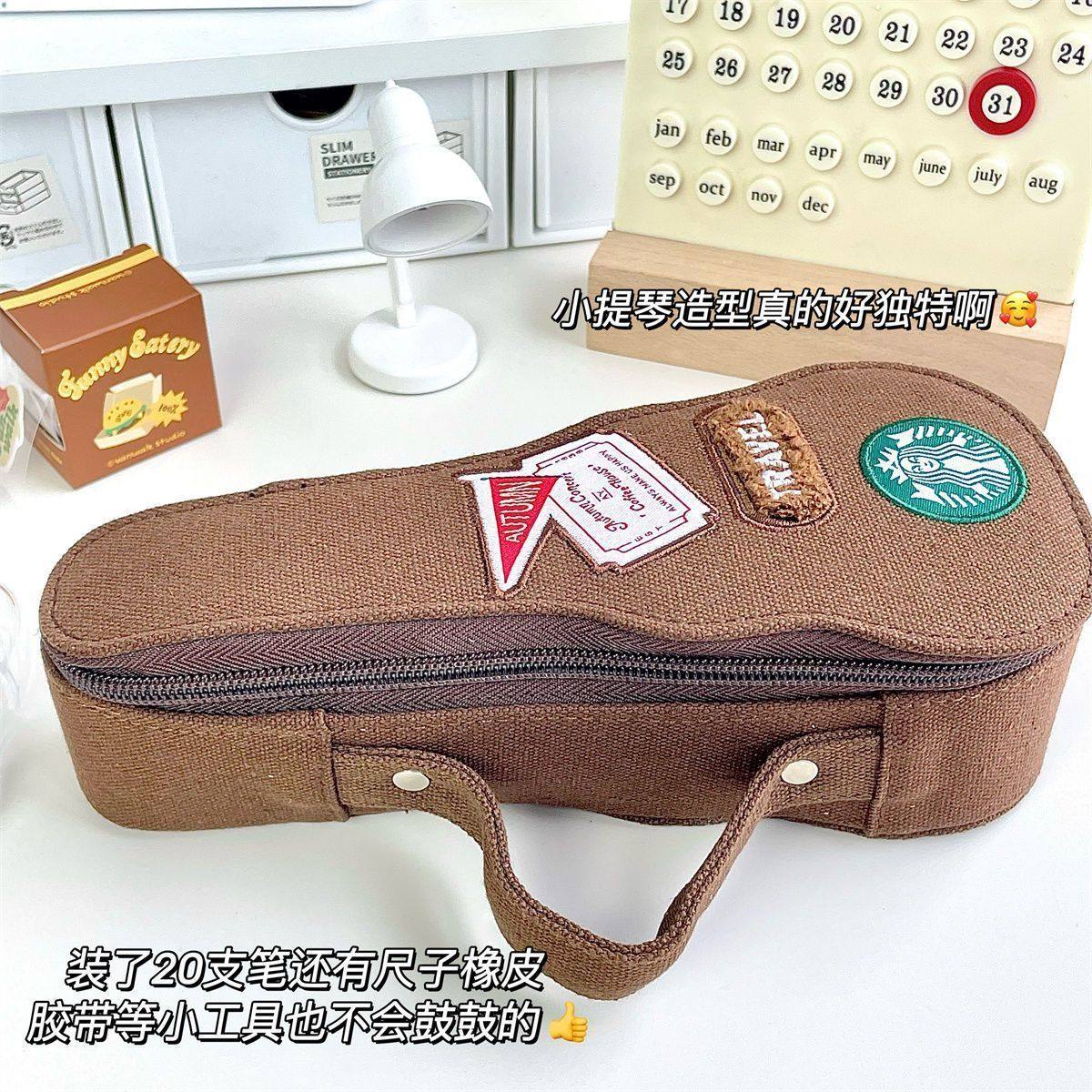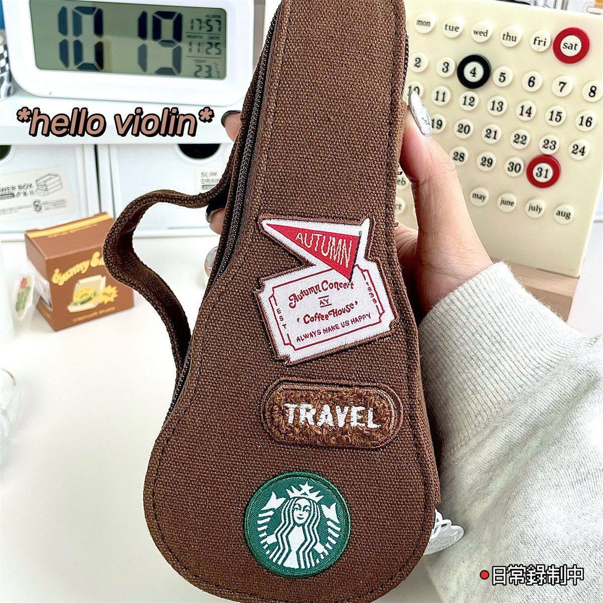小提琴笔袋.大容量纯色帆布可爱少女心ins文具盒手提高颜值学生