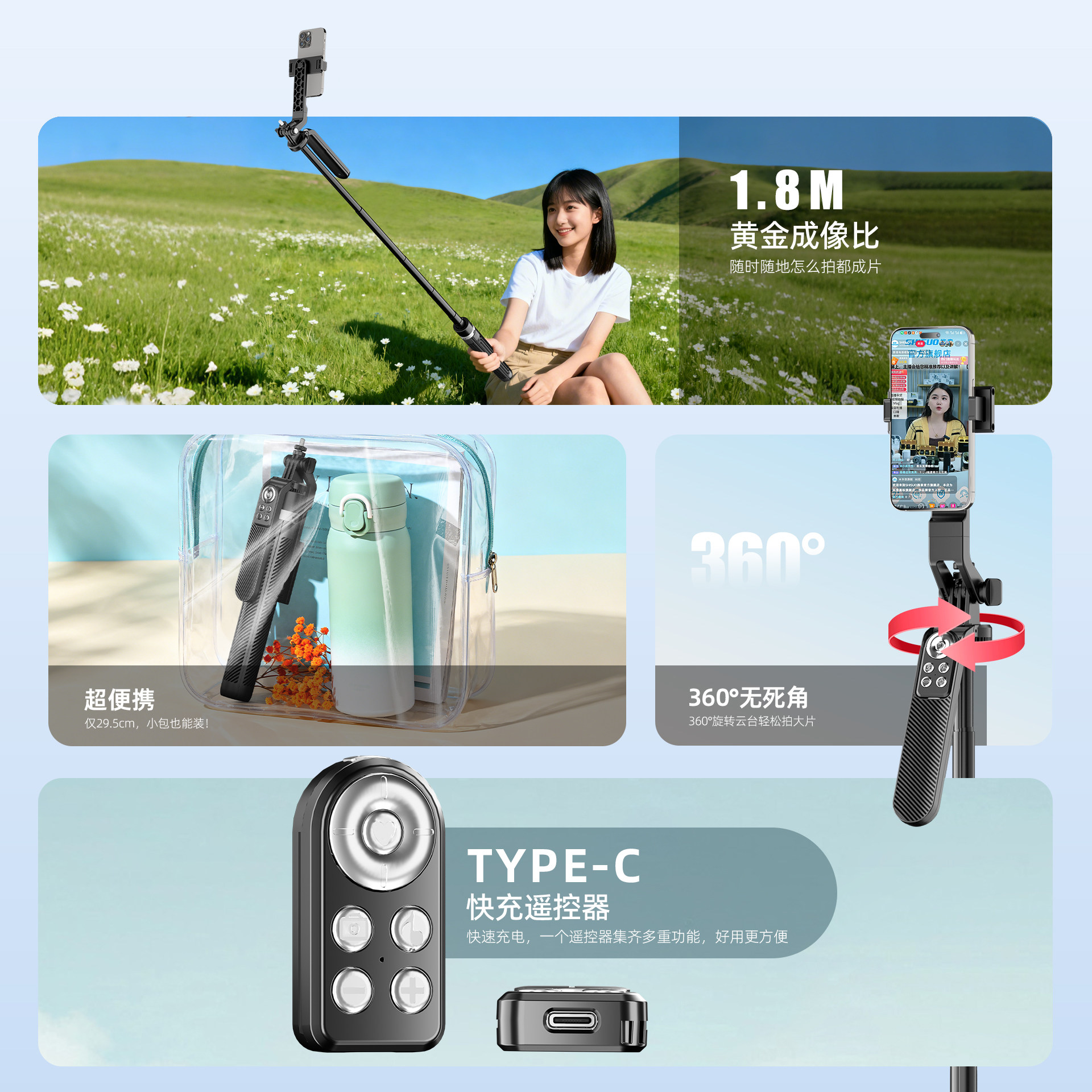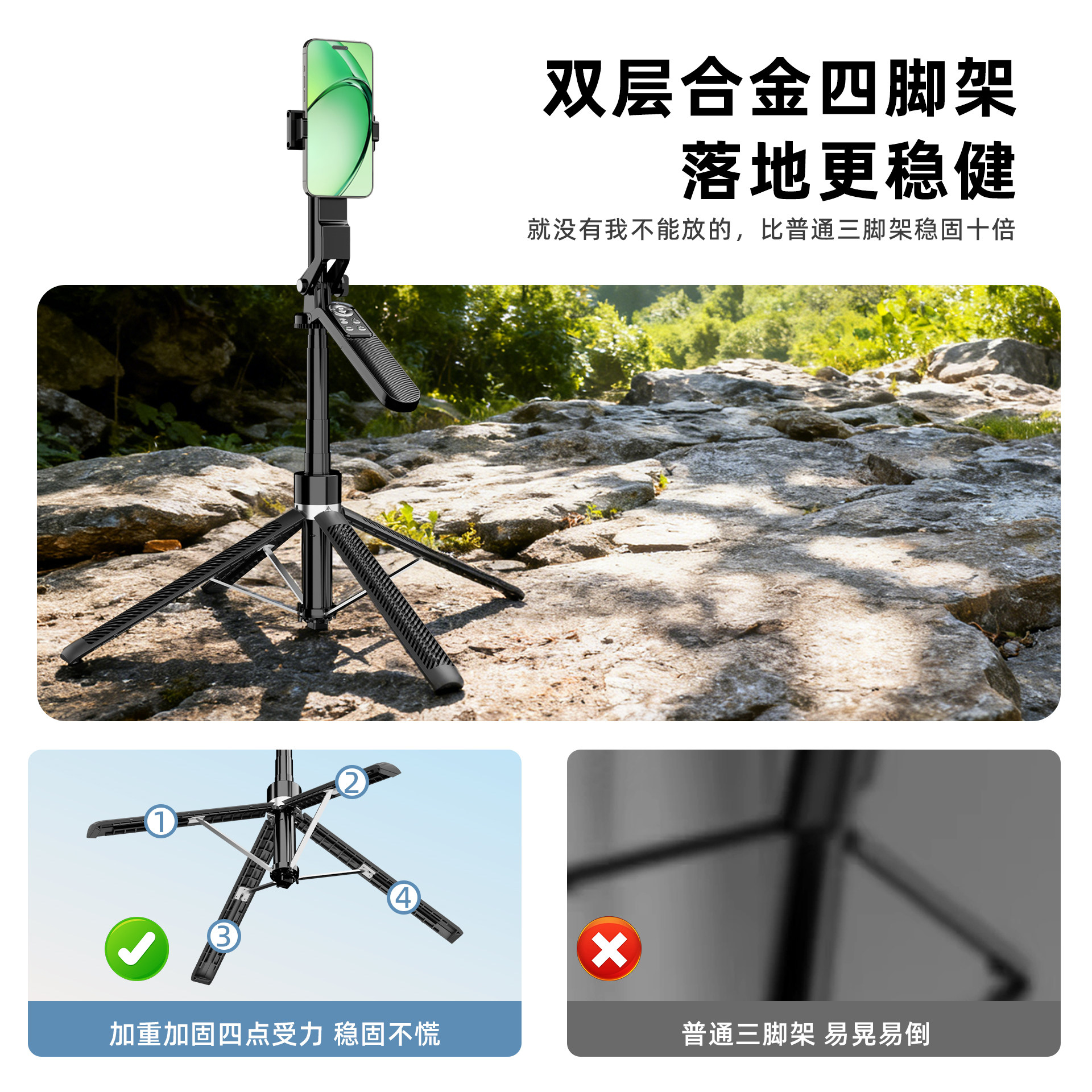 [合金四脚架]手机直播支架自拍杆落地三脚架2026新款拍摄拍照视频专用相机通用旅游便携360度旋转多功能神器